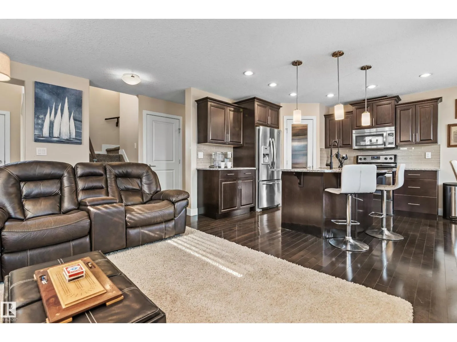 Welcome to this beautifully maintained double attached garage duplex in the sought-after community of Granville! Tucked away in a quiet cul-de-sac, this home backs onto walking paths and green space and is just steps from a scenic pond—offering the perfect blend of privacy and lifestyle. Inside, you’ll find a bright open-concept main floor featuring rich hardwood floors, a modern