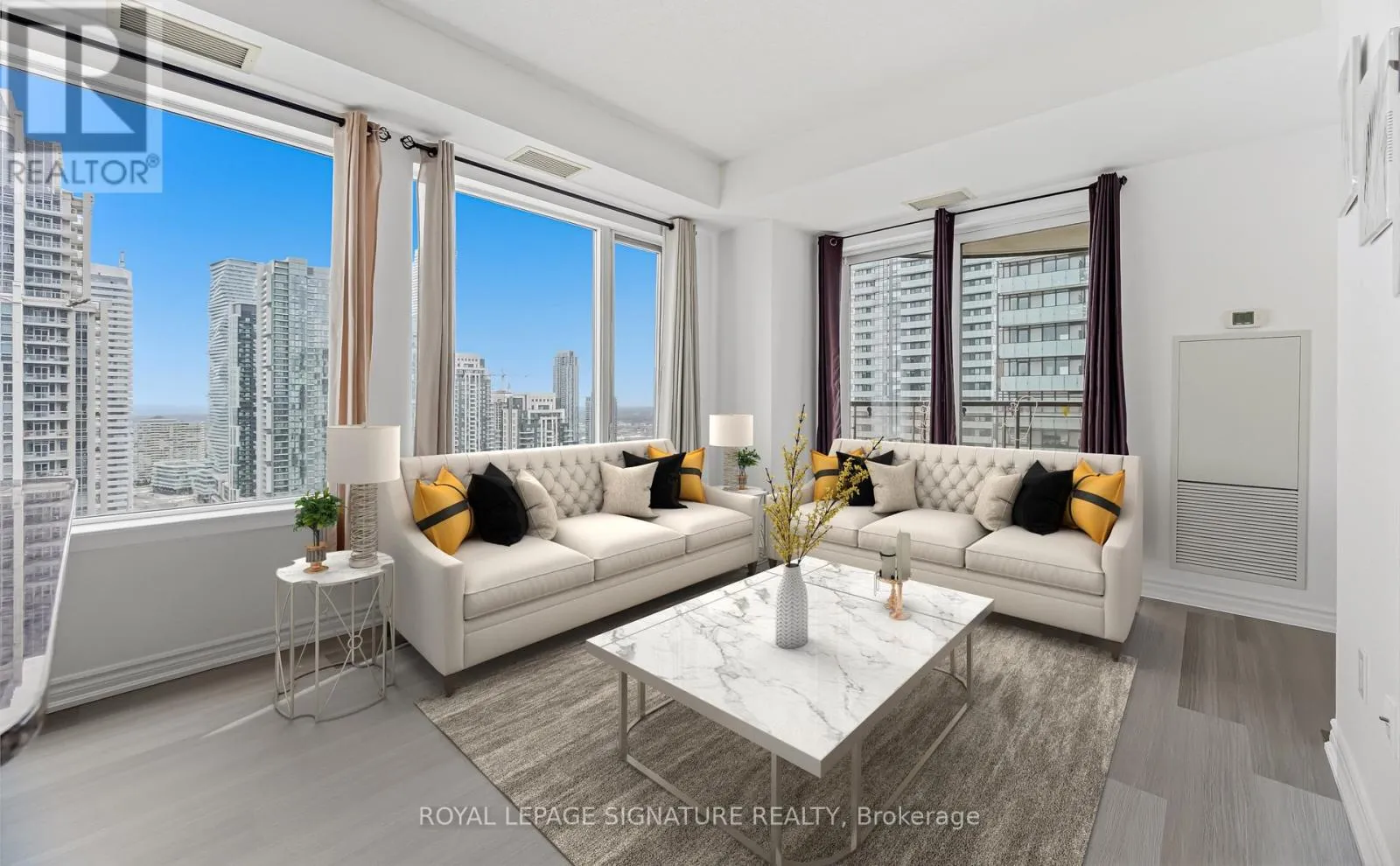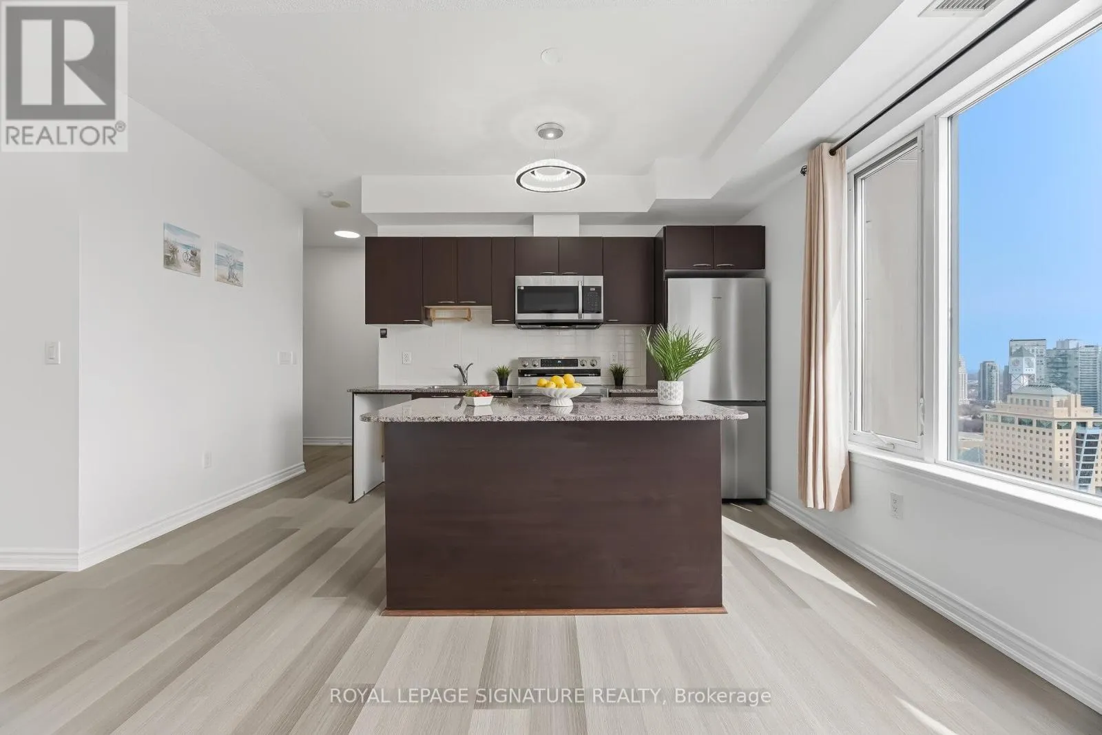 Welcome to 385 Prince of Wales Drive-an exceptional Chicago model by Daniels. This spacious 1-bedroom corner suite features a generous den, ideal for a home office or guest space, and two full bathrooms for added convenience. Enjoy stunning southwest views of downtown Toronto and the distant lake from your private balcony and expansive windows. The open-concept layout boasts 9-foot ceilings,