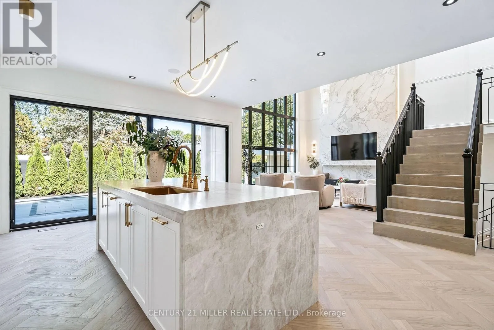 Stunning home upgraded and dressed up to the max. Beautiful French Chateau style curb appeal and extensively landscaped grounds. Luxurious finishes and attention to detail throughout. Big bright windows, custom cabinetry, loads of wall paneling and moldings, stylish stone and tile selections, hardwood herringbone flooring, integrated vents, skylight over the central staircase, beautiful interior design. Gorgeous kitchen with leathered Taj