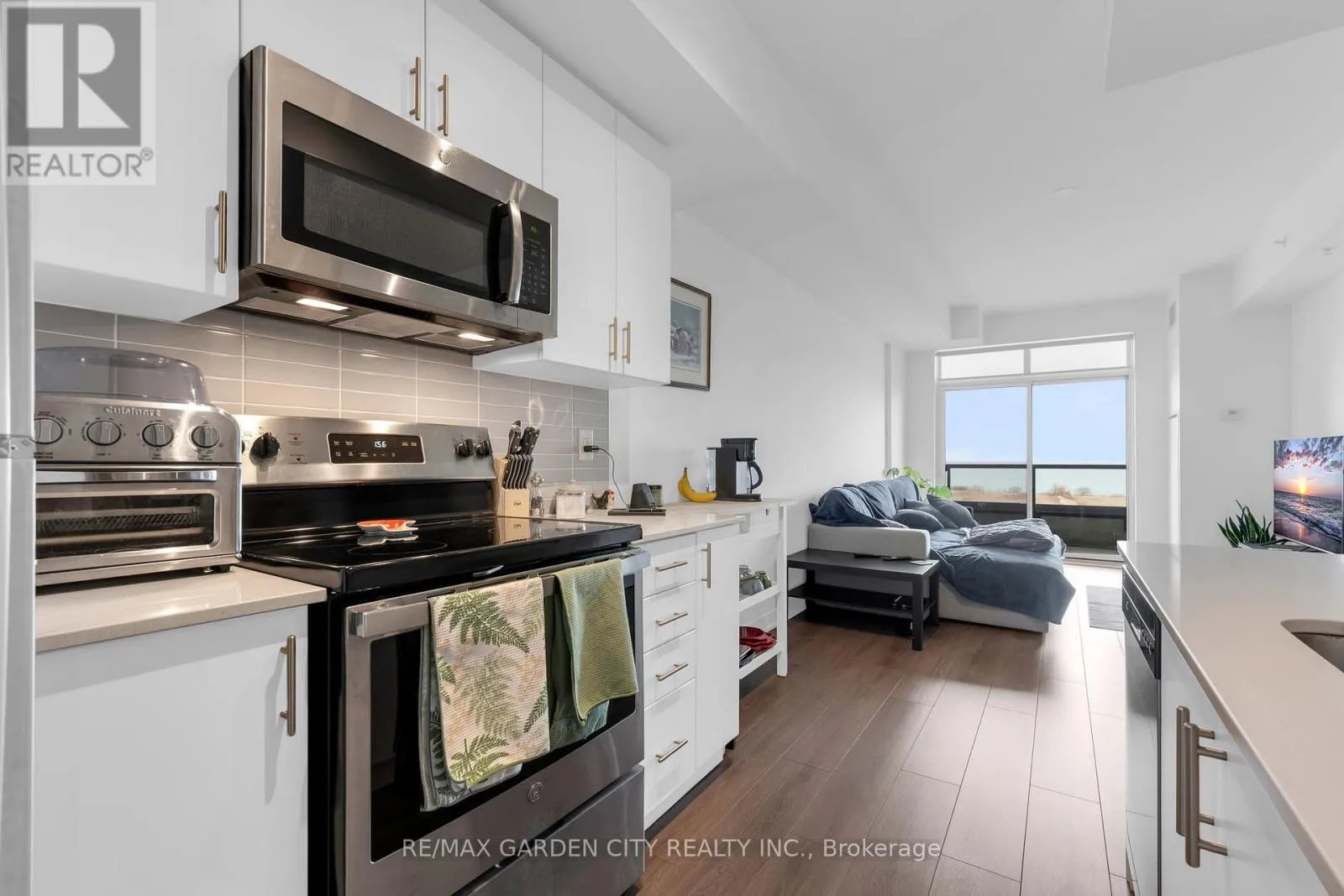 Welcome to Lakeside Waterfront Living 1 BDRM plus DEN -THE BEACH HOUSE MODEL over 800 sq ft – Impressive open concept UNIT Kitchen Island seating at breakfast bar w great space for meal prep, double sink and an abundance of white cabinets, featuring ceramic backsplash! Neutral decor and floor to ceiling windows throughout. Spacious primary bedroom with a double door