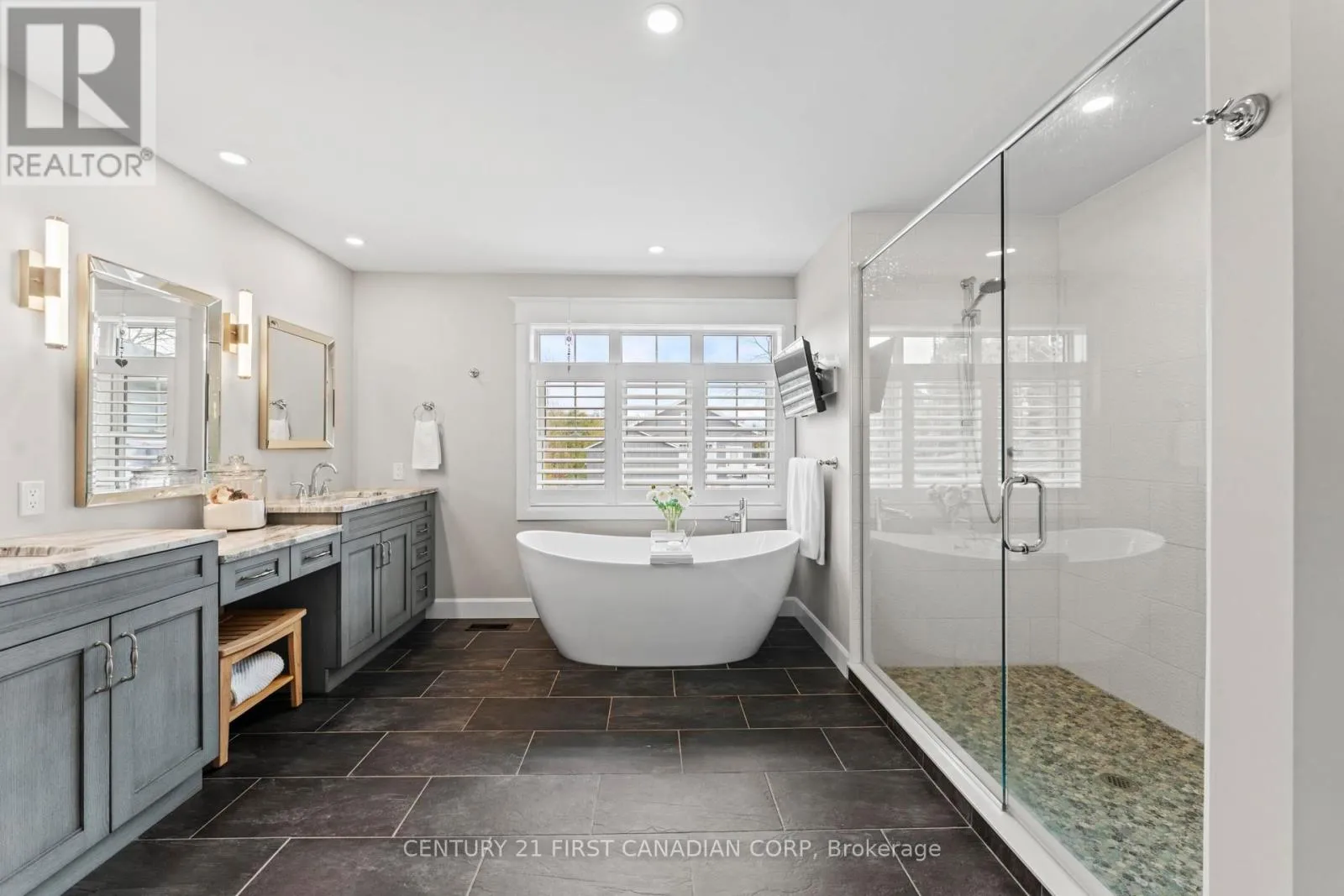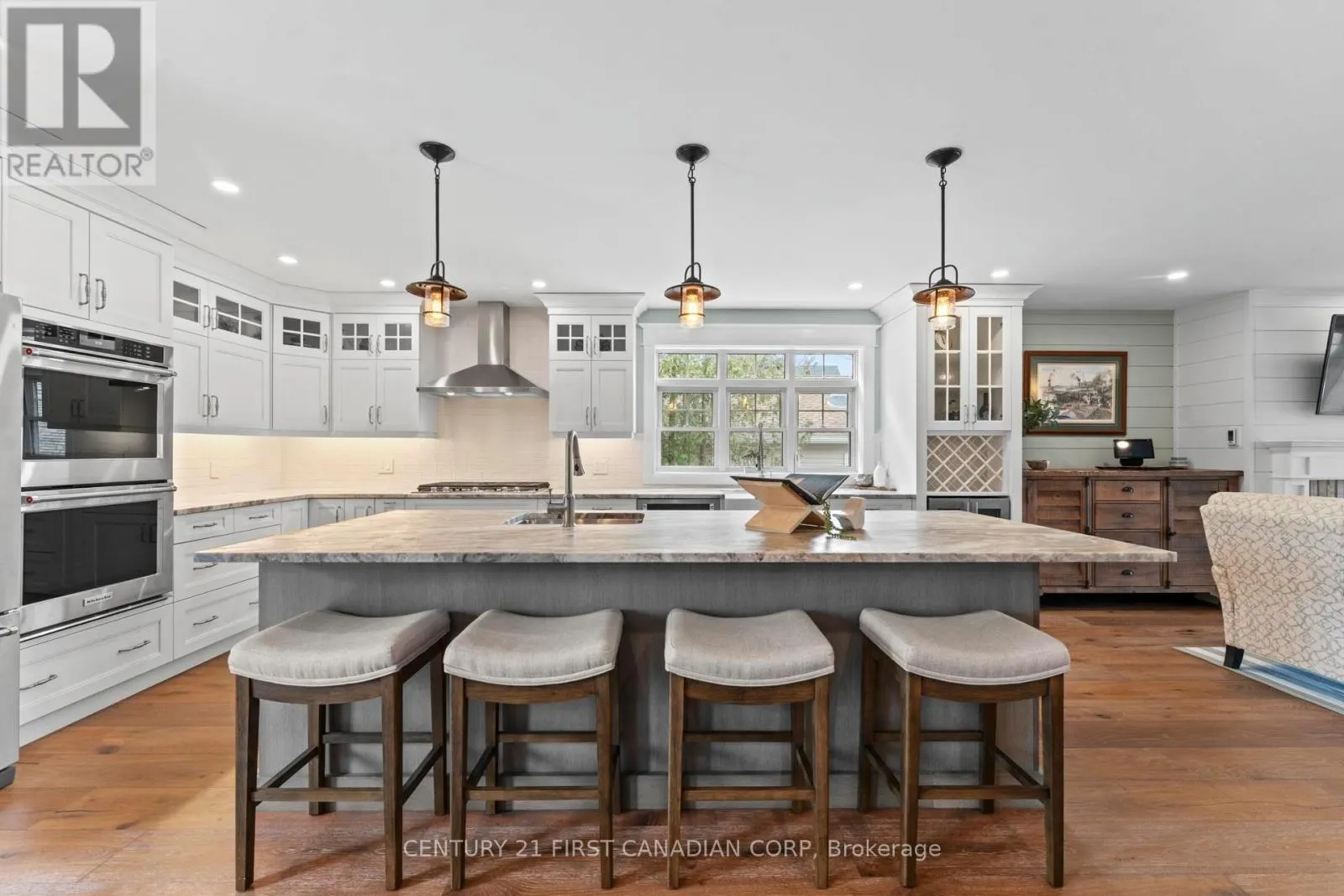An extraordinary opportunity to own a signature lake view residence on one of Bayfield’s most prestigious and sought after streets. From the moment you arrive, the elegant walkway with stone accents and expansive stamped concrete front porch with Charleston swing set the tone, offering water views and multi access points to the lake. Designed for those who appreciate a distinguished