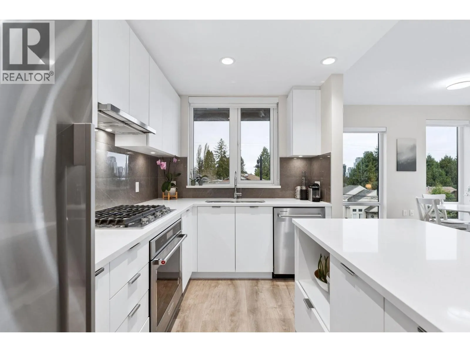Welcome to Cardinal by Polygon! This like-new SW corner unit offers 1,115 sqft of well-designed living space. This 3 bed, 2 bath home features sleek S/S appliances, engineered stone countertops, and 9-ft ceilings that create a bright, airy feel, generously sized bedrooms with a large walk-in closet in the primary, a spa-like ensuite with dual sinks, and a spacious balcony.