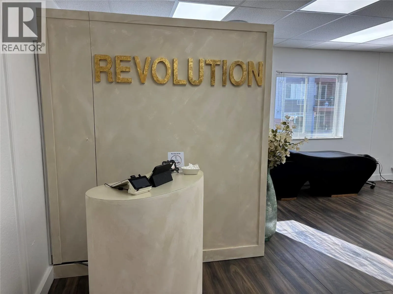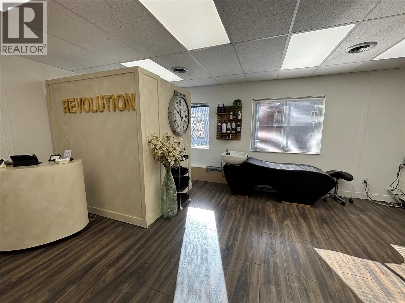 Bright, modern, and move-in ready, 201–1579 Sutherland Ave is a 392 SF second-floor unit offering a turnkey opportunity in a desirable central area of Kelowna. The space features durable vinyl plank flooring and a wall of south-facing windows that flood the unit with natural light, creating an inviting and elevated environment for both clients and customers. Currently built out as