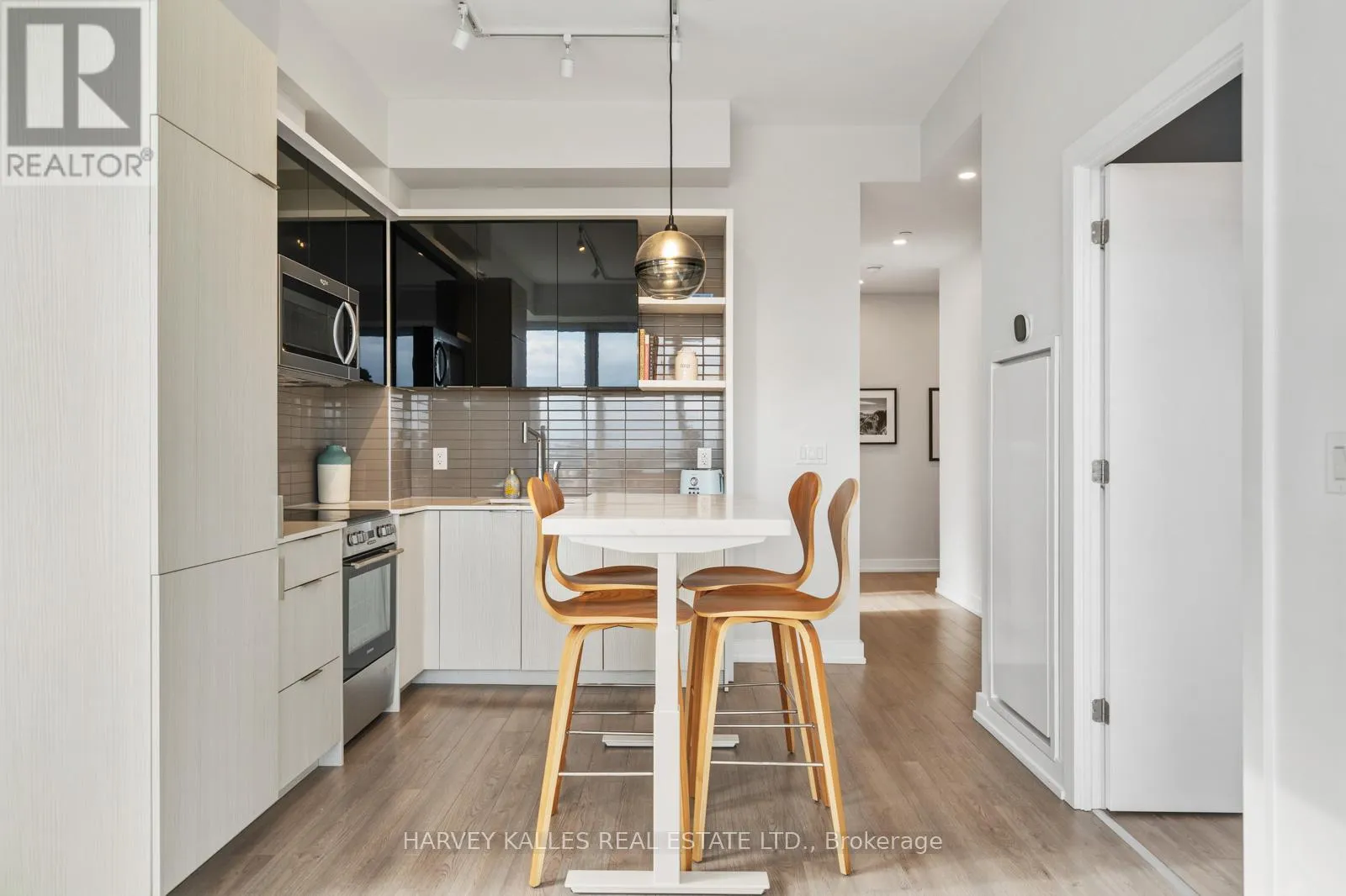 Experience refined living at 6 Parkwood Ave #511-a boutique residence in the heart of Forest Hill. This beautifully appointed 2-bedroom, 2-bathroom corner suite is flooded with natural light, offering expansive south-facing views from Winston Churchill Park to the city skyline.The open-concept layout is both functional and inviting, with seamless flow between the living, dining, and kitchen areas-ideal for entertaining or