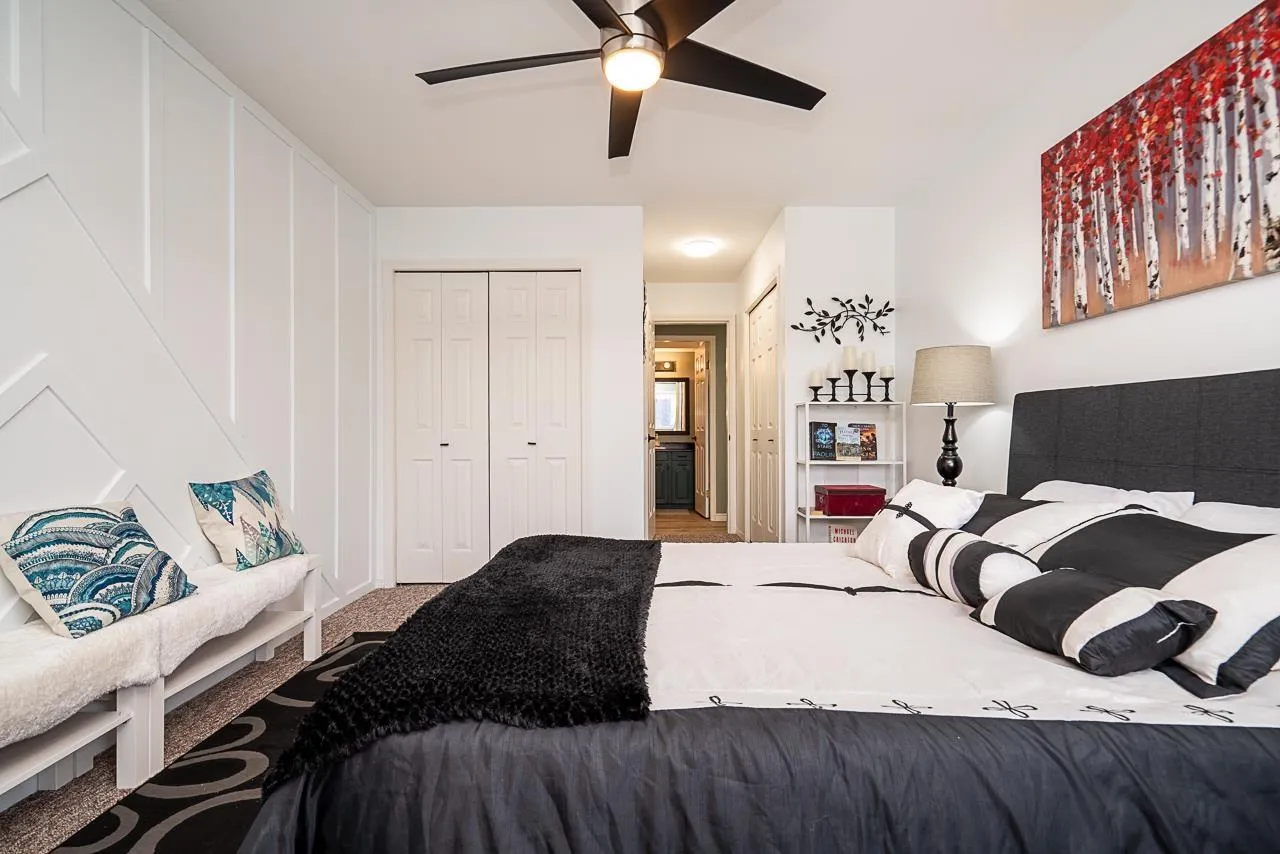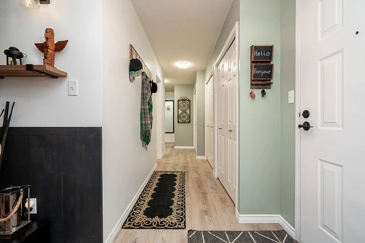 Renovated Park Place Retreat in the heart of Abbotsford. Beautifully updated 2 bed, 2 bath home with over 1200 sq ft of stylish, turn key living in this sought after 55 plus community. Open concept living and dining leads to a peaceful enclosed balcony. Upgrades include contemporary palettes, LED lighting, newer flooring, custom built in nook, electric fireplace, updated vanities