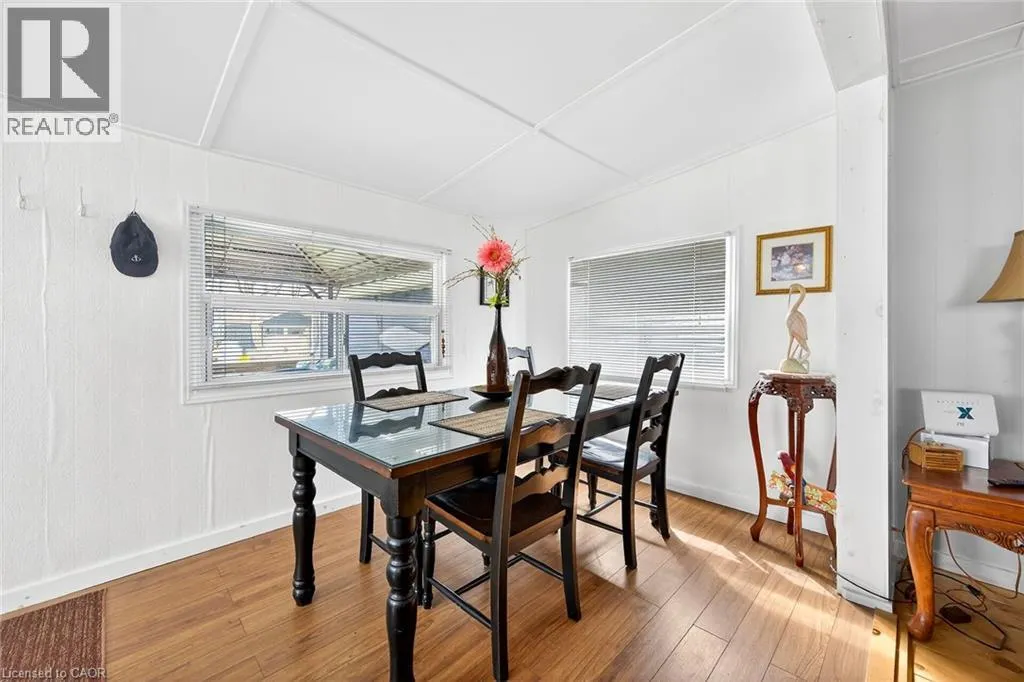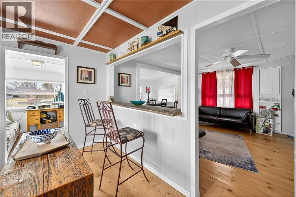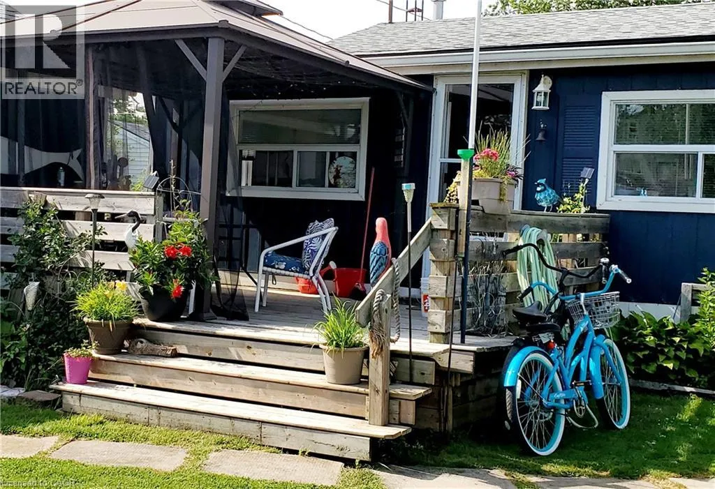 This extremely well-maintained and affordable seasonal cottage is located on leased land in the welcoming community of Featherstone Point. It sits on a double deep lot sheltered from lake winds, with partial lake views just steps from a private sand beach. The open-concept layout features a dining/sitting area overlooking the front deck with gazebo, a kitchen equipped with a refrigerator