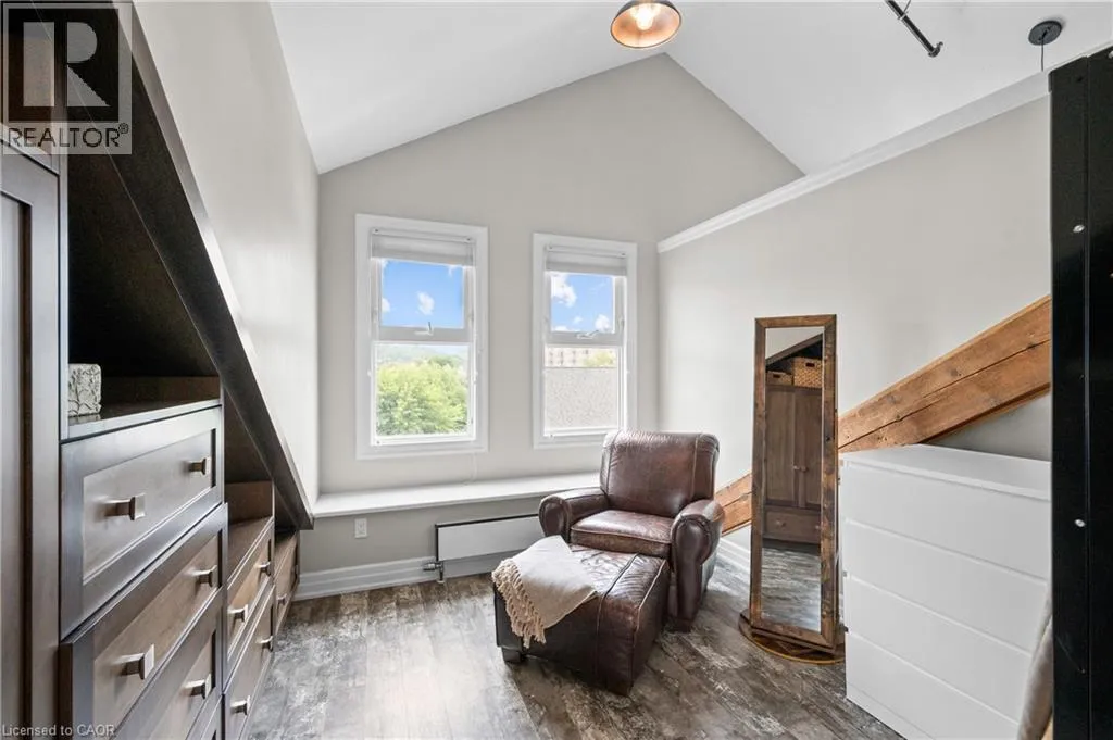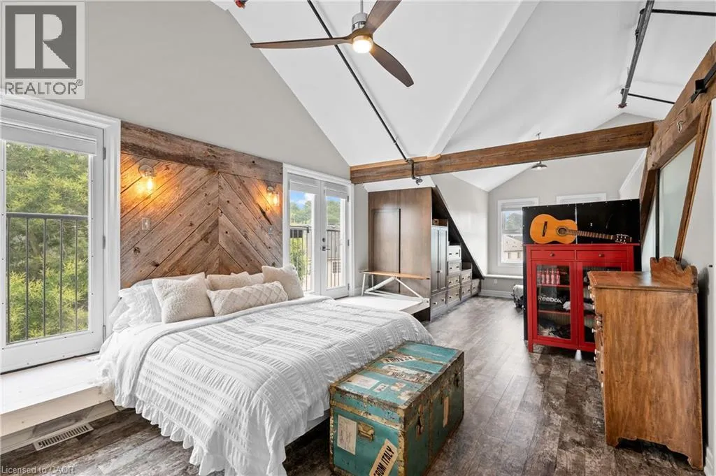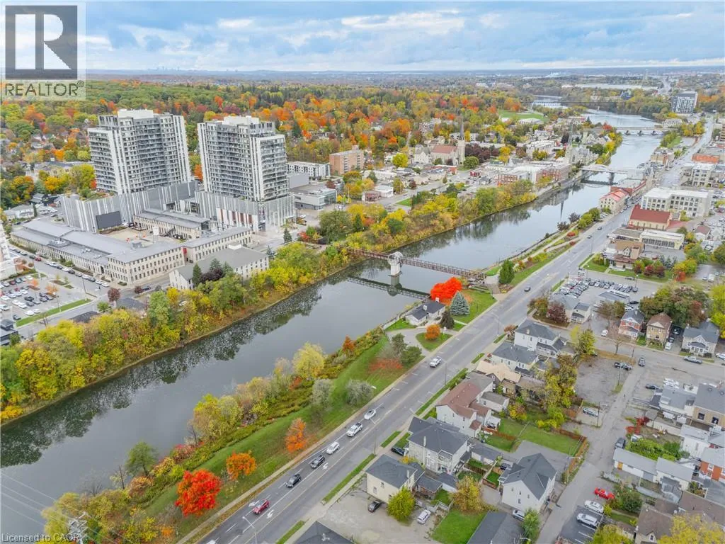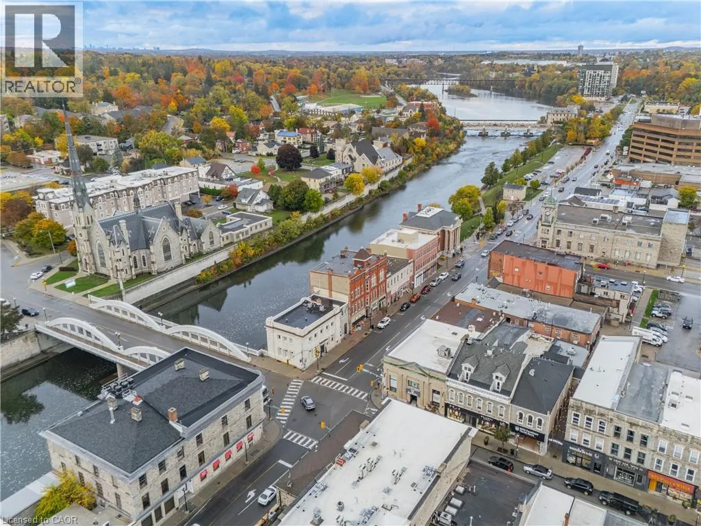 Experience elevated urban living in one of the largest two-storey lofts in the Waterloo Region. This exceptional corner penthouse on the Grand River features soaring 12-foot ceilings and oversized windows that flood the home with natural light. Rich architectural details – including original wood beams and striking stone walls – create a sophisticated New York-style loft ambiance. The main level