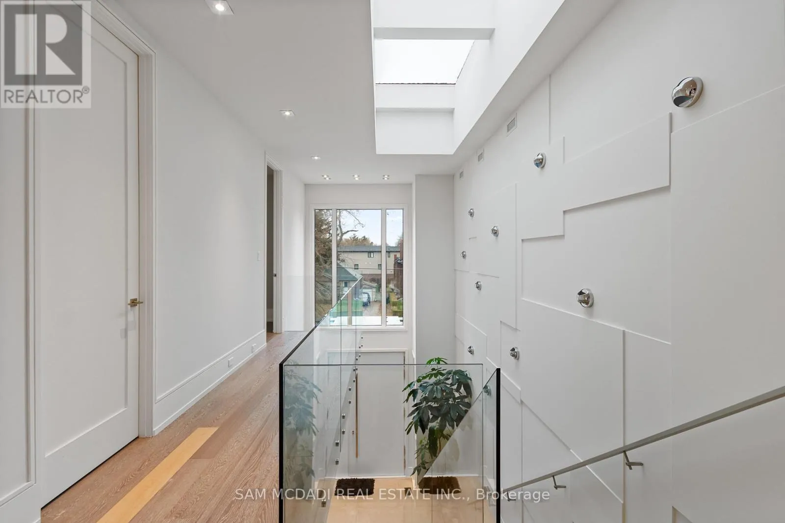 Set along South Etobicoke’s prestigious lakefront corridor, this modern estate offers over 6,200 SF of refined interiors paired with resort-style amenities seldom available. Bold in presence and uncompromising in design, it sits behind mature trees with an architectural profile that frames uninterrupted Lake Ontario views. A dramatic open-to-above foyer introduces the home, featuring a floating glass staircase, overhead skylights, and