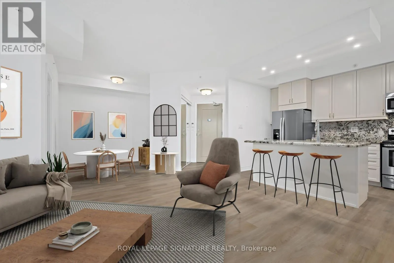 Welcome to The Courtyards of Maple. Intimate, easy to navigate, and comfortable, an alternative to high-rise condo living. “The Rome” spans 992 sq ft with 2 bedrooms, 2 baths + 9-foot ceilings create a bright and inviting space. The open-concept living room feels bright, airy, and perfectly homey, with seamless access to the balcony. Think condo living means no garden