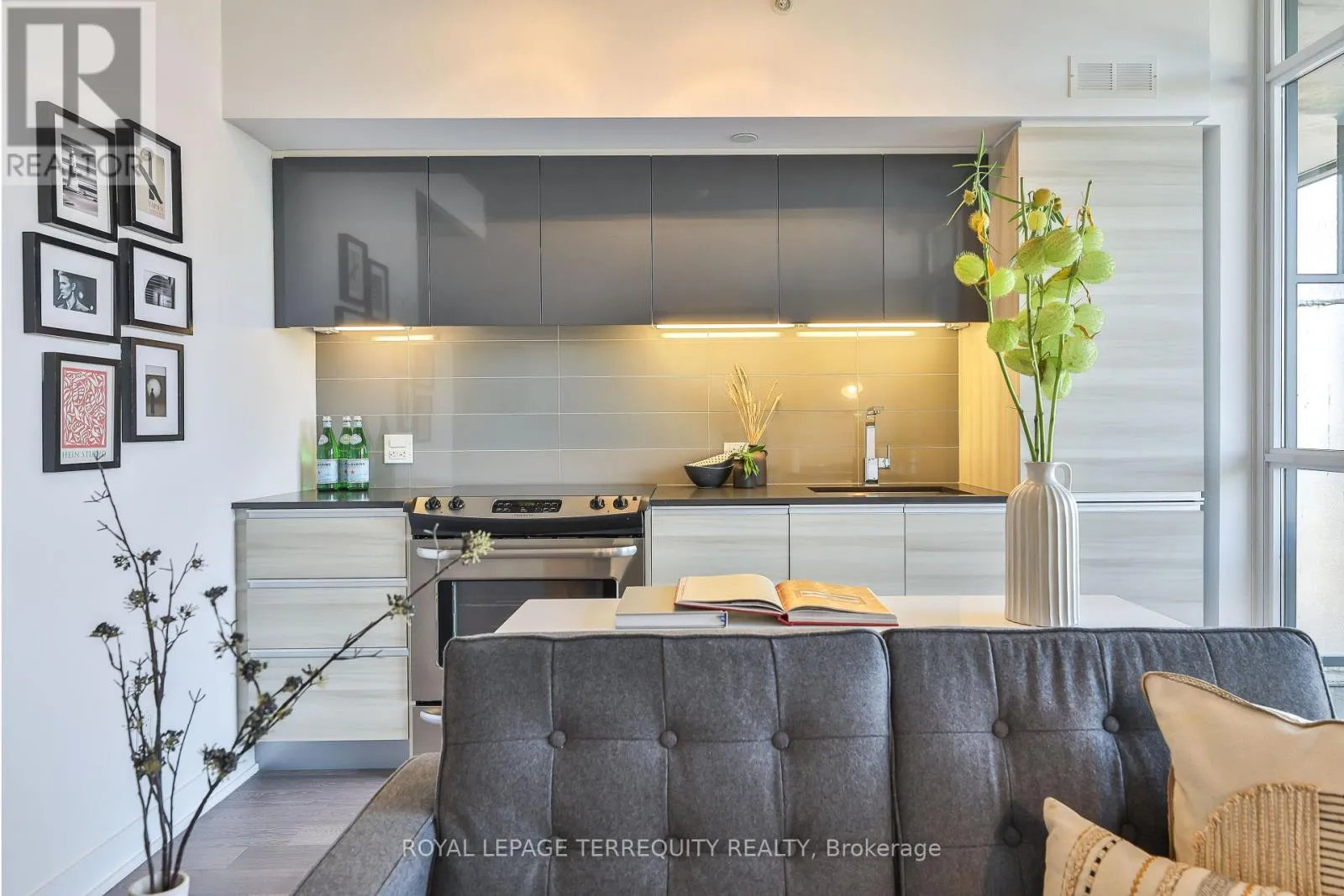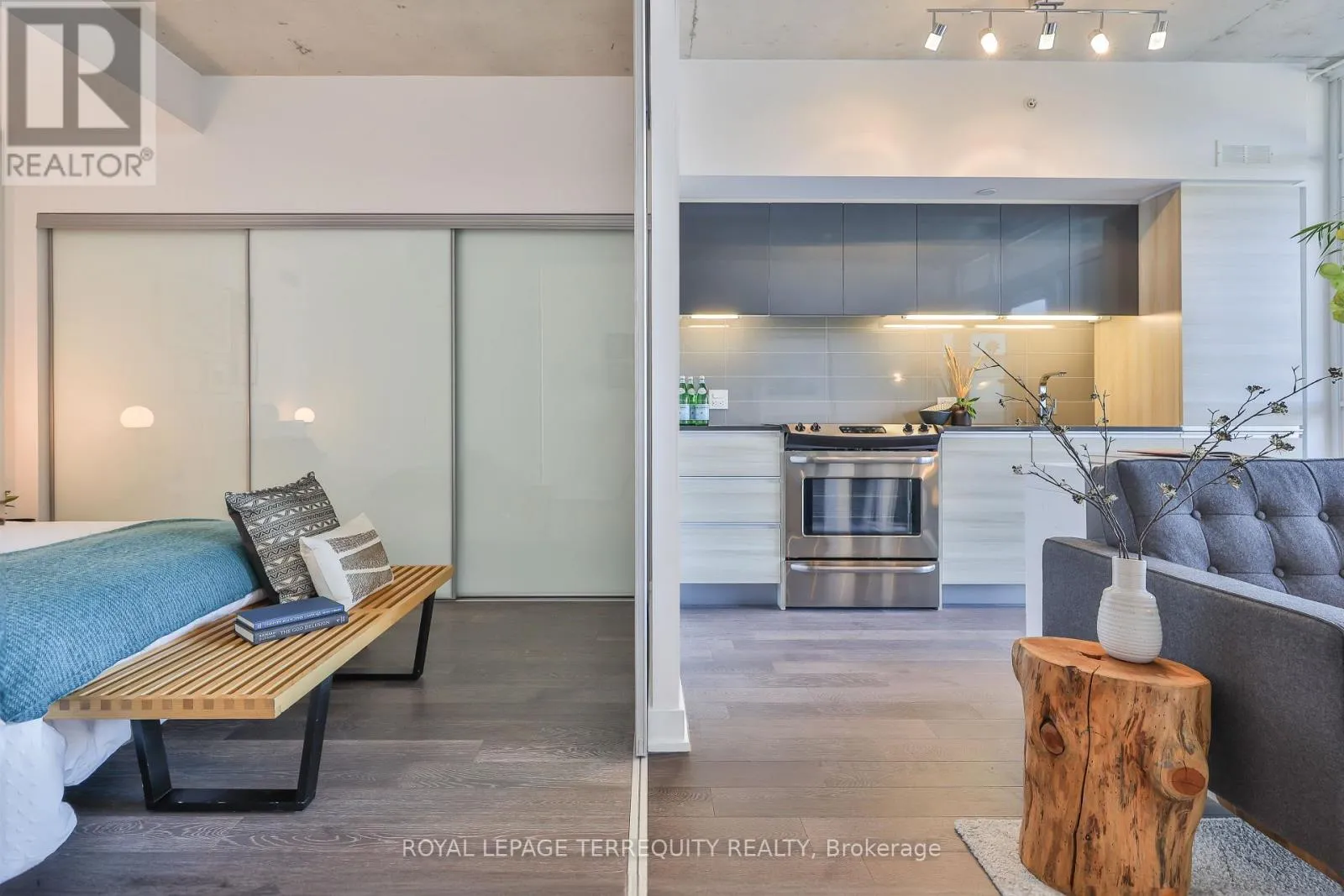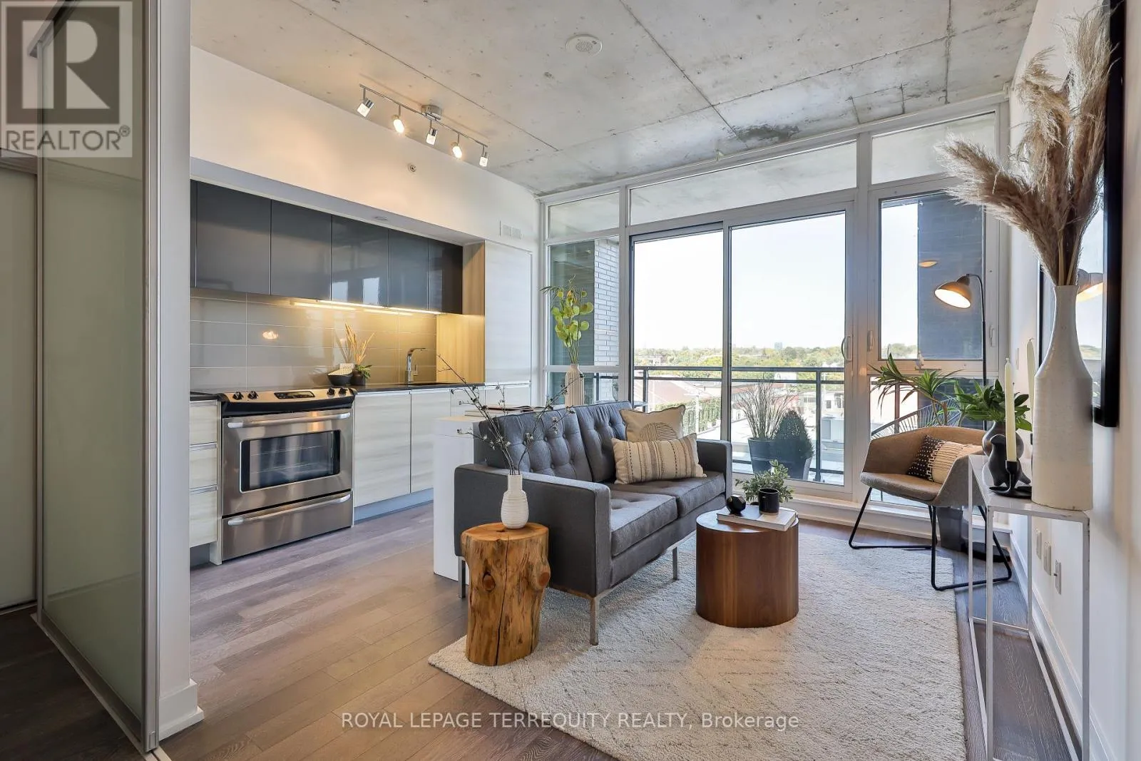 Effortless city living starts here at The Carlaw. Bright, airy, and impeccably styled, this turn-key suite delivers smart design with a cool, confident edge. Small but mighty, the layout is clean and intentional – a contemporary kitchen, private bedroom, exposed concrete ceilings, crisp white walls, and floor-to-ceiling windows that flood the space with natural light. Add outdoor space and clever