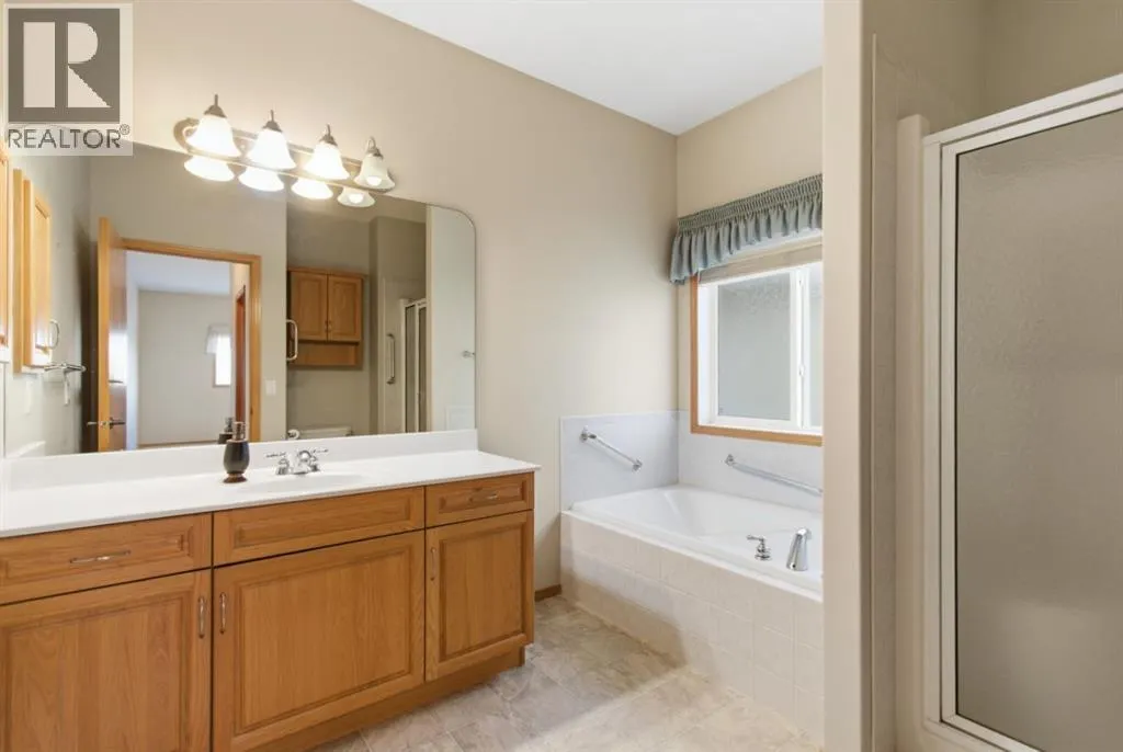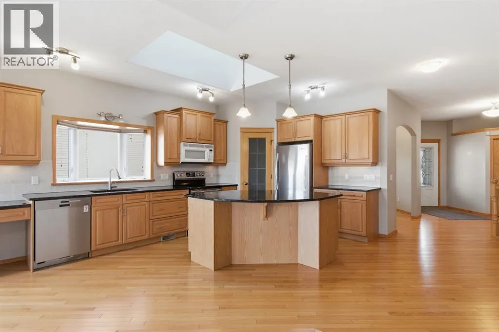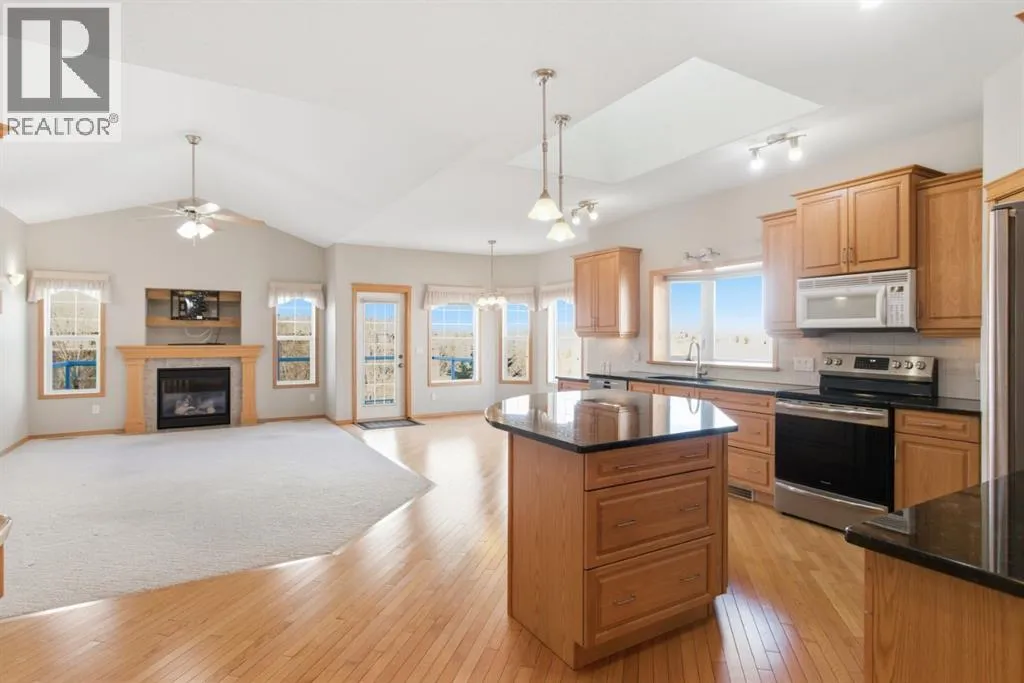 This meticulously well kept bungalow in Coopers Crossing, with over 2800 sq ft of living space, features an open-concept main floor designed for effortless living and entertaining. The heart of the home is a bright kitchen equipped with a central island, granite counter tops, and skylight, which flows directly into a vaulted living room anchored by a fireplace. The primary
