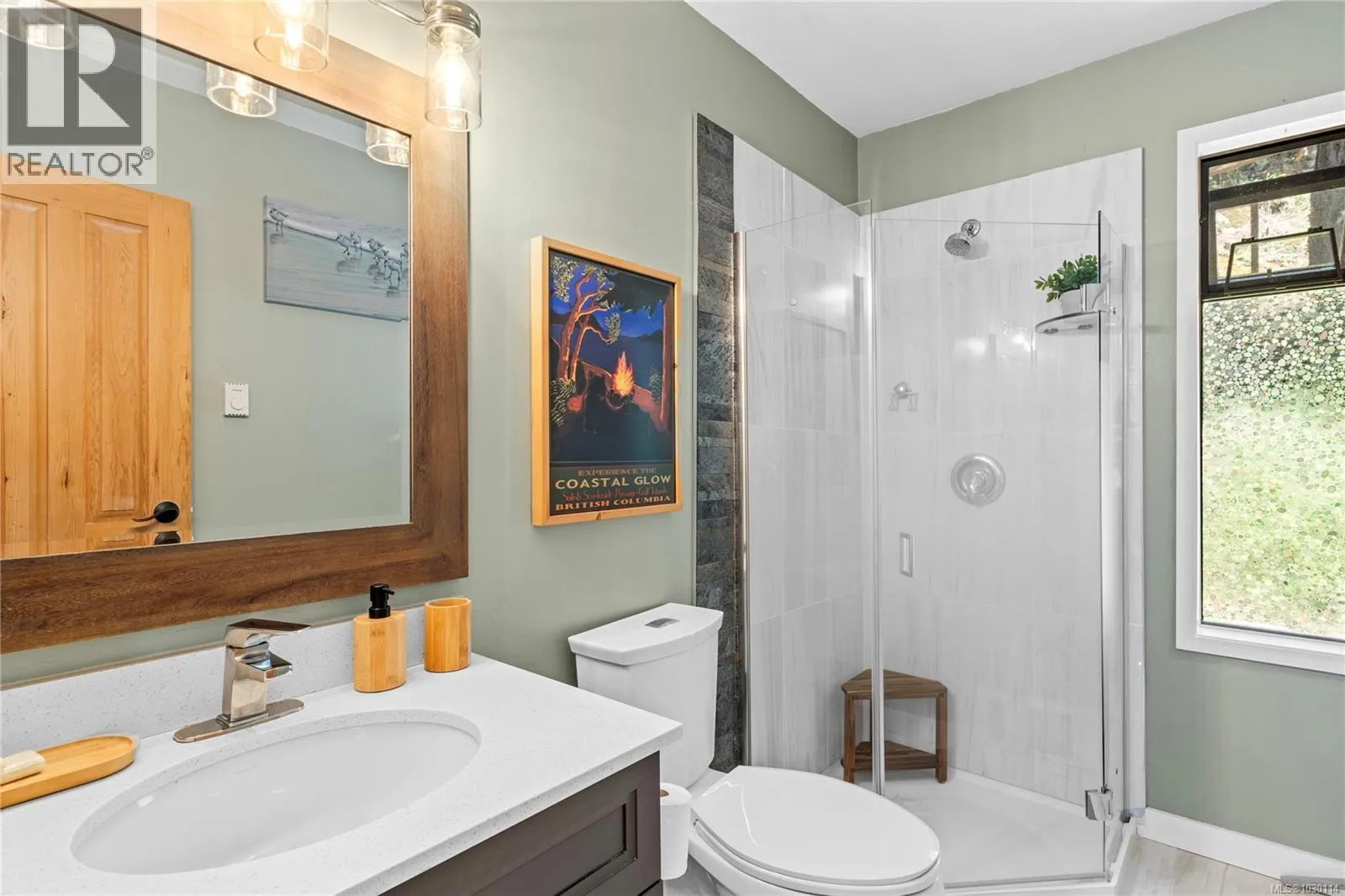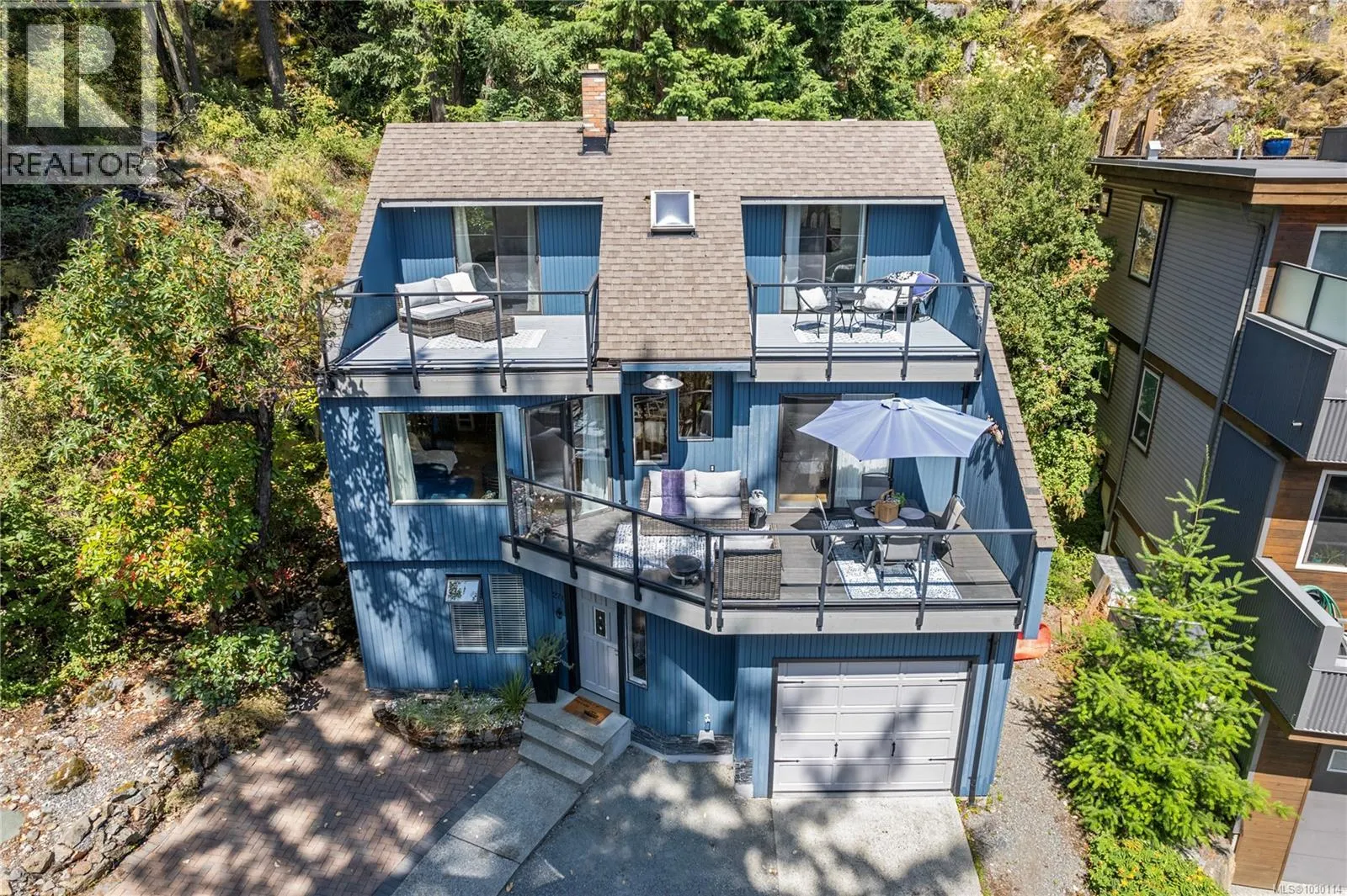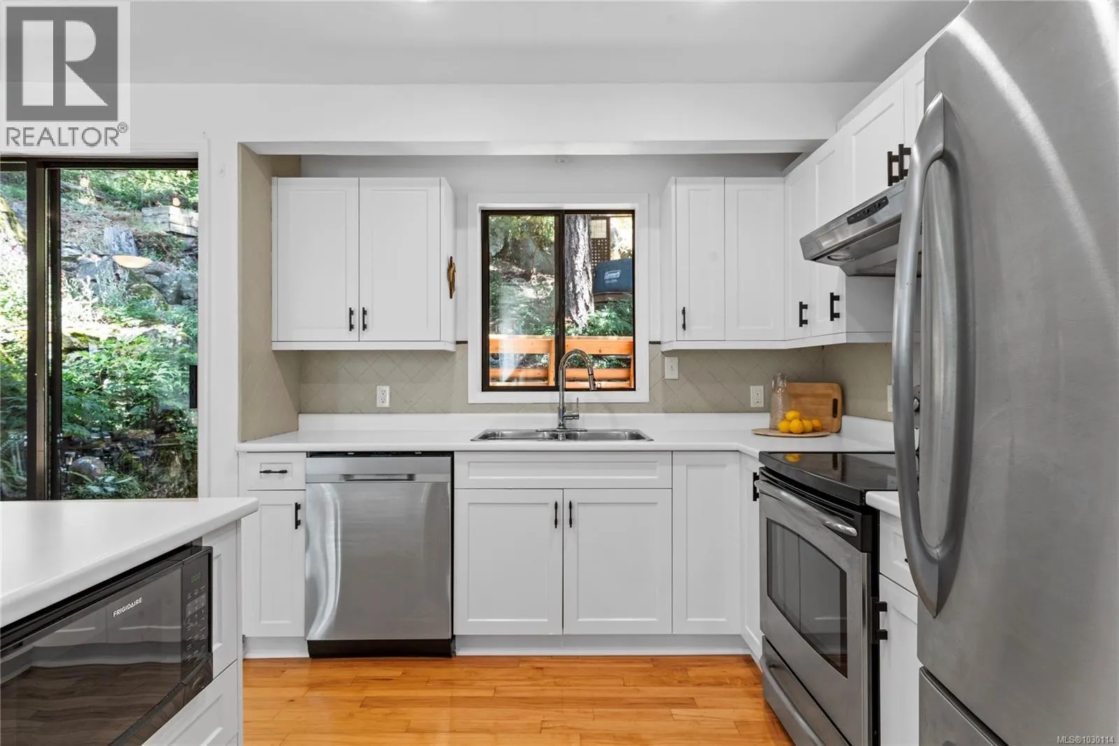 This beautifully designed unique home offers views of Long Lake and a layout that blends functionality with West Coast charm. On the main level is an open-concept living space with hardwood flooring, a kitchen equipped with stainless appliances, and living room with access to the main deck. The primary bedroom also opens onto the deck and features a walk-in closet