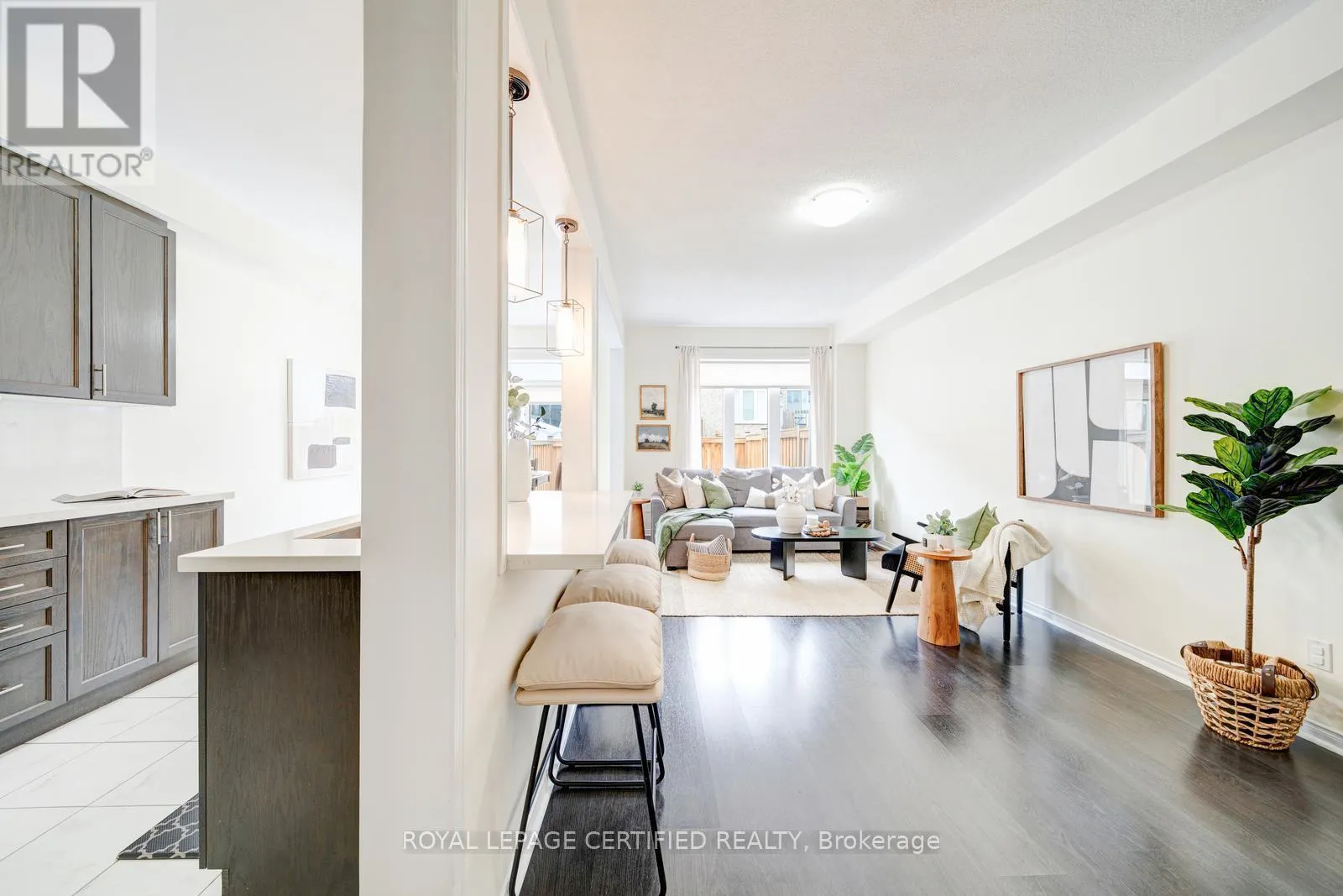 Beautifully upgraded Cornerbrook Bedford Model townhome (approx. 1,737 sq ft) in Whitby’s highly sought-after Williamsburg community, known for top-rated schools and a family-friendly atmosphere. The bright open-concept main floor was redesigned by removing the kitchen wall, creating seamless living and dining spaces. The modern kitchen features quartz countertops and backsplash, Gemini sink, stylish pendant lighting, and ample cabinetry. All appliances