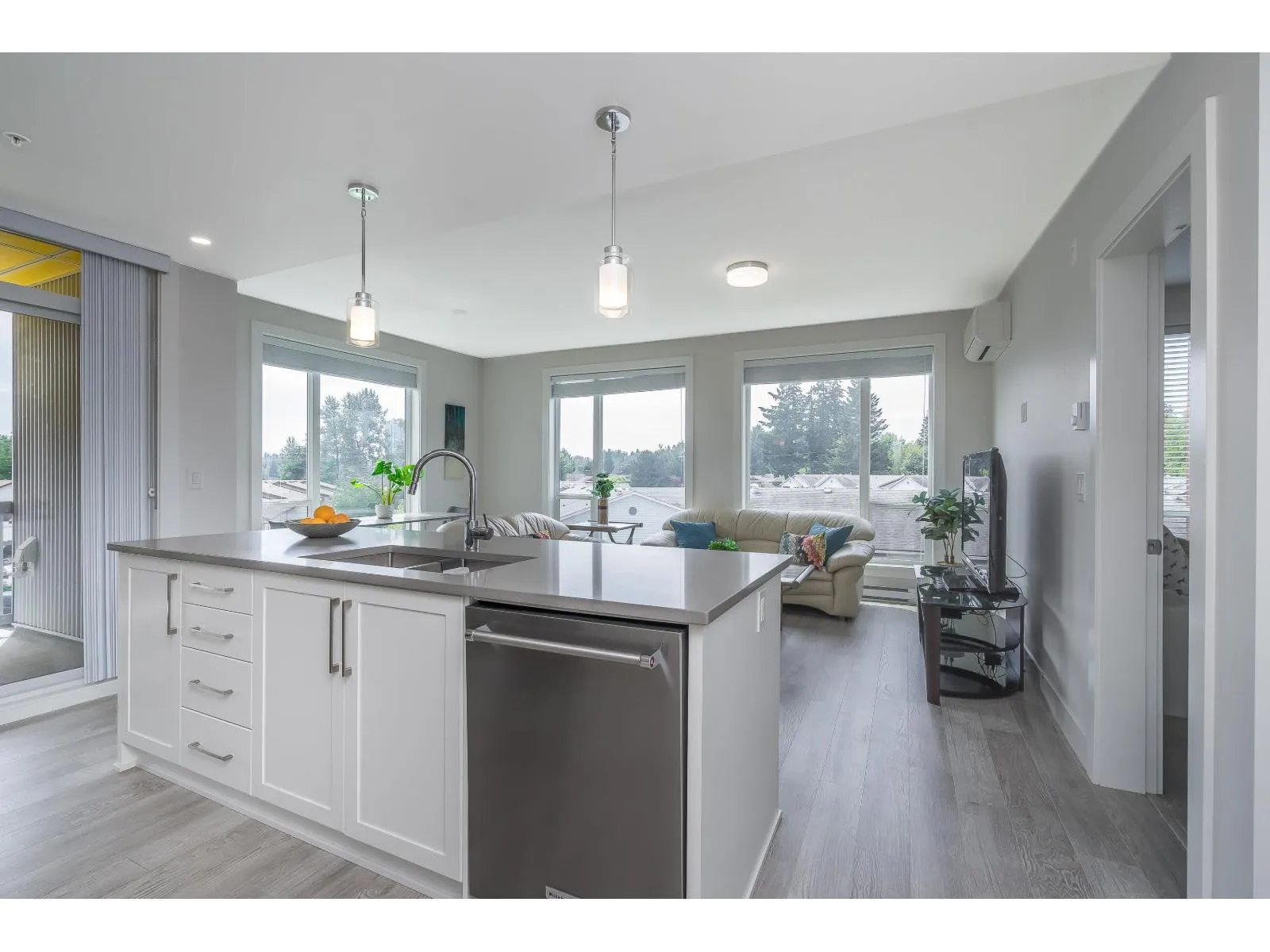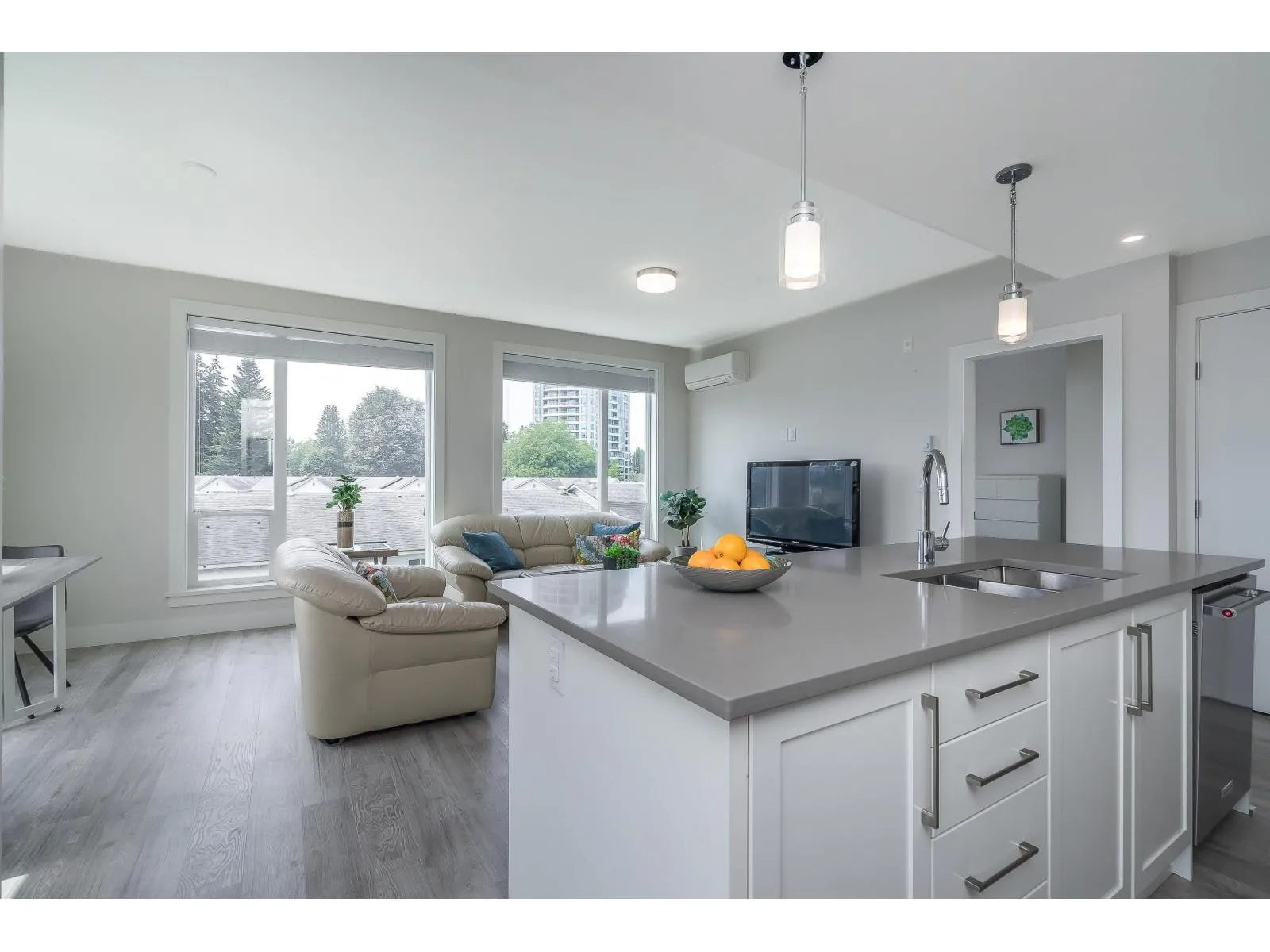 Be impressed as you walk into this 2 bed/2 bath corner unit beaming with natural light! This home offers large windows, A/C, side-by-side washer & dryer, and an efficient floor plan with functionality & comfort in mind. Kitchen & living area flow effortlessly, making this a perfect home for both living & entertaining. KitchenAid appliances, quartz countertops, island, gas oven,