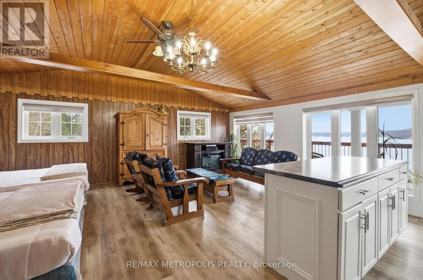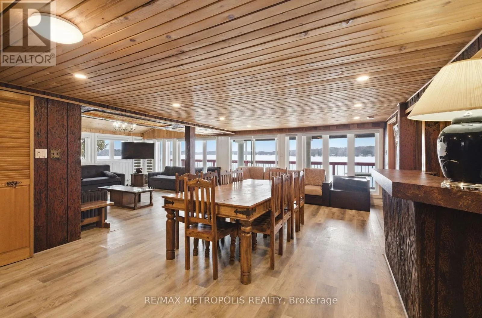 Rare waterfront compound on Wollaston Lake featuring approx. 530 ft of pristine shoreline and stunning west-facing sunset views. Set on a spacious lot, this unique property offers a large main residence with multiple self-contained units accommodating up to 25 guests-ideal for short-term rental income or multi-family use. Includes a separate 2-bedroom cottage with private shoreline and a standout 2-storey double