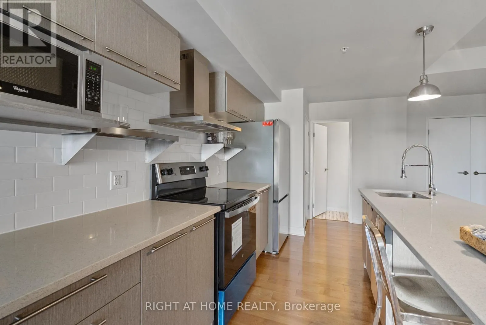 Experience this 1-bedroom, 1.5-bath condo offering 865 sq. ft. plus a 95 sq. ft. balcony with gas BBQ hookup. This bright unit features oversized windows, an exposed brick wall, sleek vessel sinks, and brand-new appliances throughout.Modern kitchen with quartz countertops, floating shelves, breakfast bar, and stainless steel appliances. Enjoy top-tier amenities including a gym, pet spa, party/lounge room with WiFi,