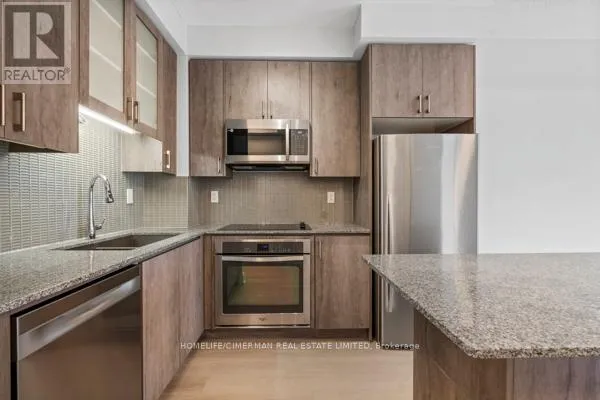 Welcome to the prestigious Grand Genesis Condominiums on Yonge! This beautifully updated and spacious one-bedroom suite offers modern comfort and style throughout. Featuring newer high-quality vinyl flooring across the foyer, living room, kitchen, and primary bedroom, along with freshly painted throughout one year ago, this home is truly move-in ready. The stunning kitchen is designed for both functionality and elegance,