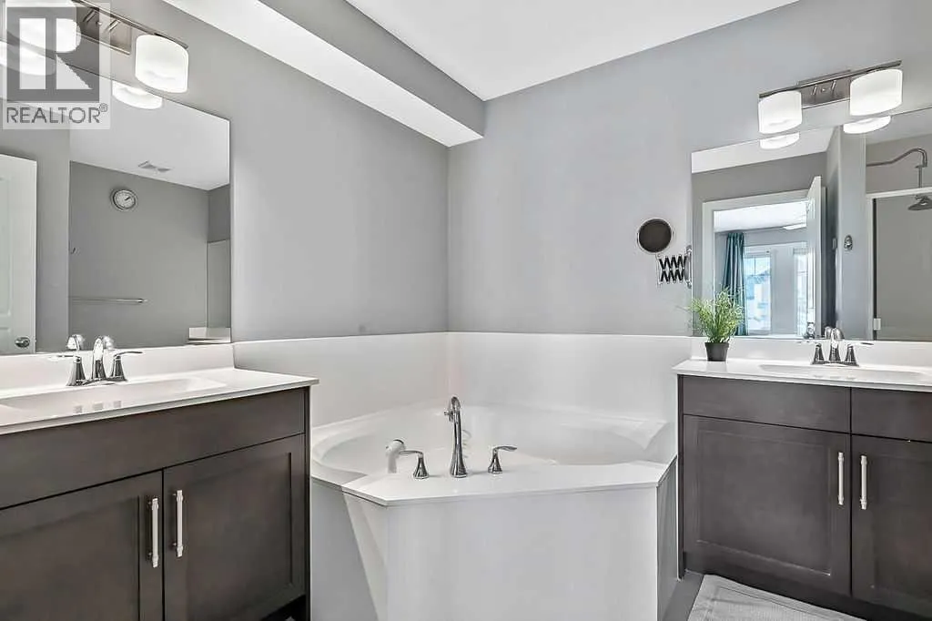 Welcome to this gorgeous semi-detached two storey home in the highly desirable, FAMILY FRIENDLY RIVER HEIGHTS neighbourhood of Cochrane. Thoughtfully designed with a stunning wide open floor plan, this home is filled with natural light and modern finishes throughout. The central kitchen, featuring an extra long island, quartz countertops, quality appliances including a gas stove, ample cabinetry and a
