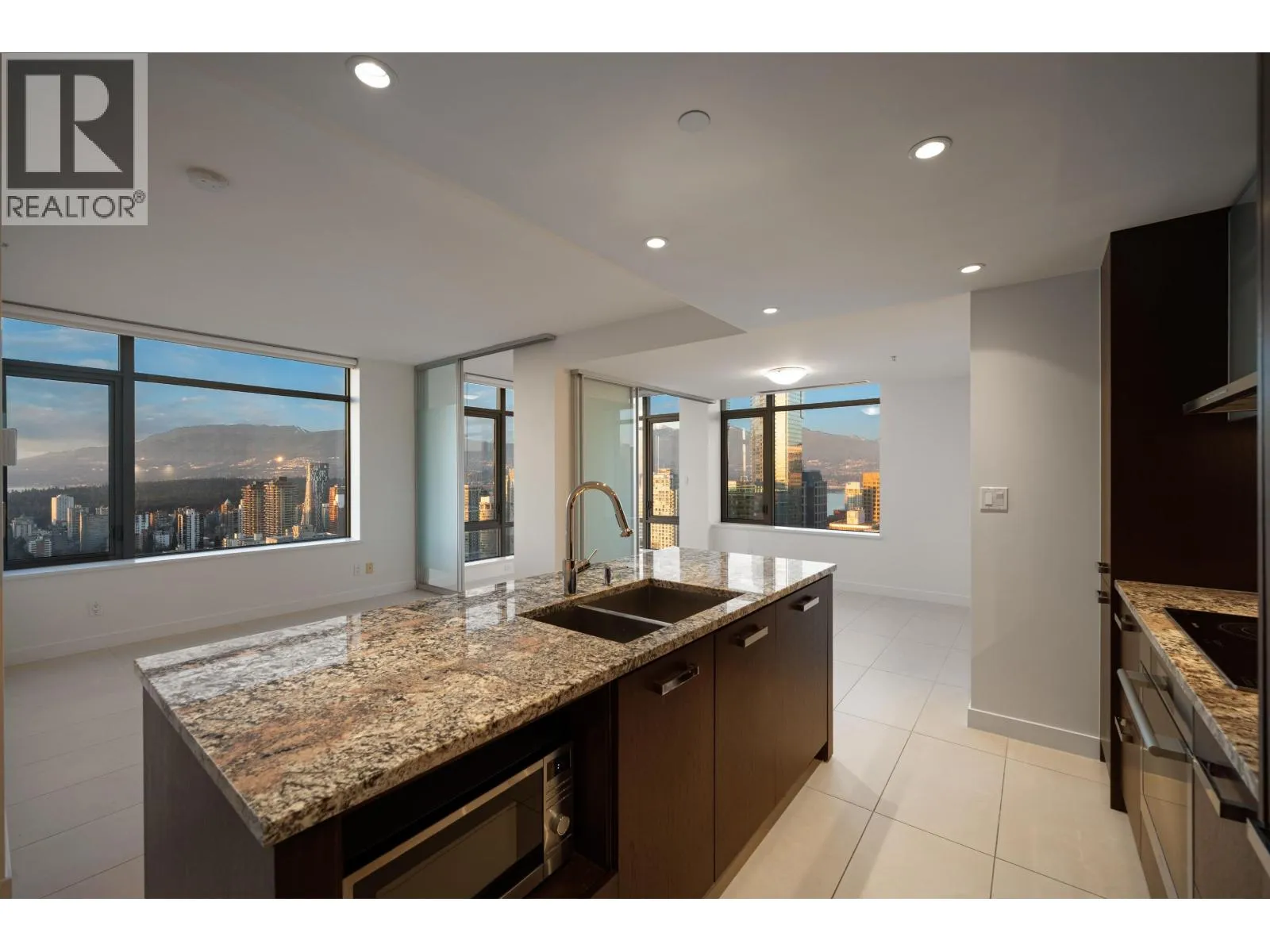 Patina by Concert Properties. Perched on the 34th floor, this stunning 2-bed, 2-bath residence captures sweeping ocean, mountain, and city skyline views. Offering 1,152 sqft. of thoughtfully designed living space, the home features an open-concept layout, refined finishes and quality. The gourmet kitchen is equipped with Liebherr and Miele appliances, while an energy-efficient heat pump system provides year-round air conditioning