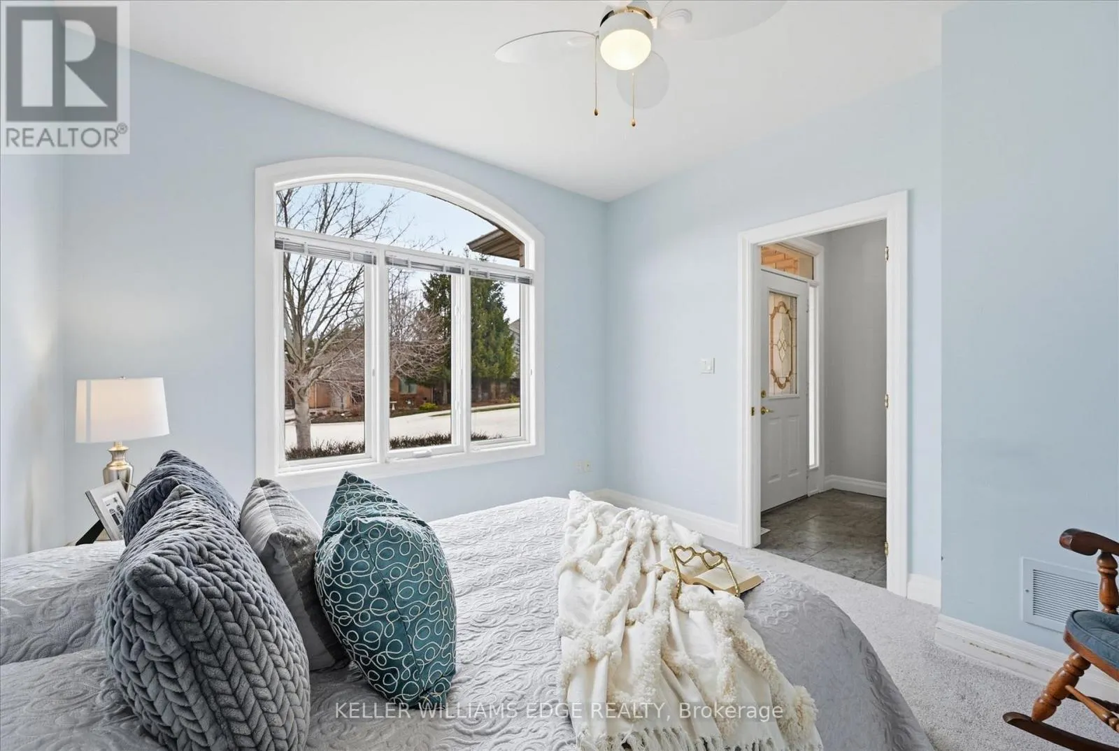 Huge Windows, Natural Light, Open Spaces, High Ceilings. This is a well-designed, well built great option for main floor living. Enjoy entertaining in this open design living room, dining and kitchen overlooking the private back deck with automated awning. Two full baths on the main floor, one in the primary and one conveniently located off the hall, next to the