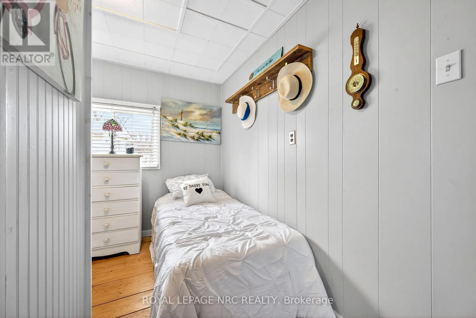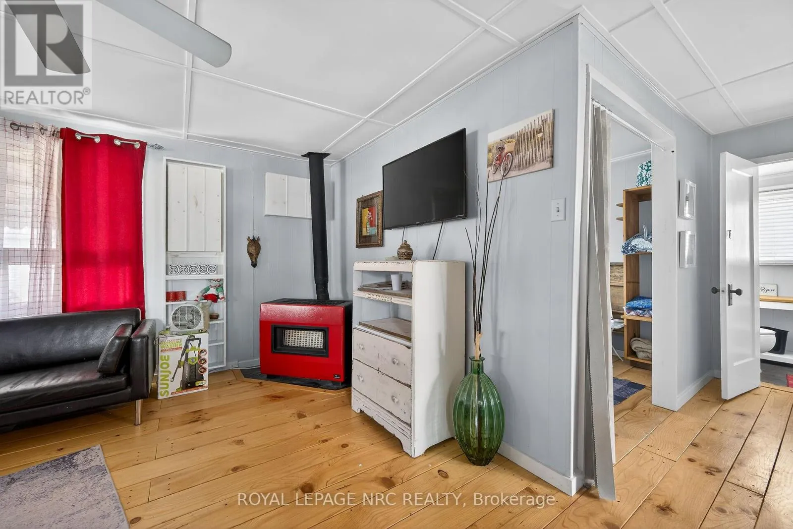 This extremely well-maintained and affordable seasonal cottage is located on leased land in thewelcoming community of Featherstone Point. It sits on a double deep lot sheltered from lakewinds, with partial lake views just steps from a private sand beach. The open-concept layoutfeatures a dining/sitting area overlooking the front deck with gazebo, a kitchen equipped with arefrigerator and stove, ample cabinetry,