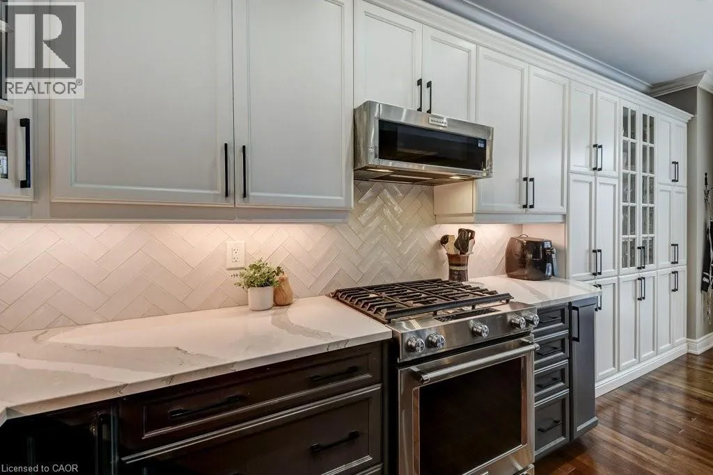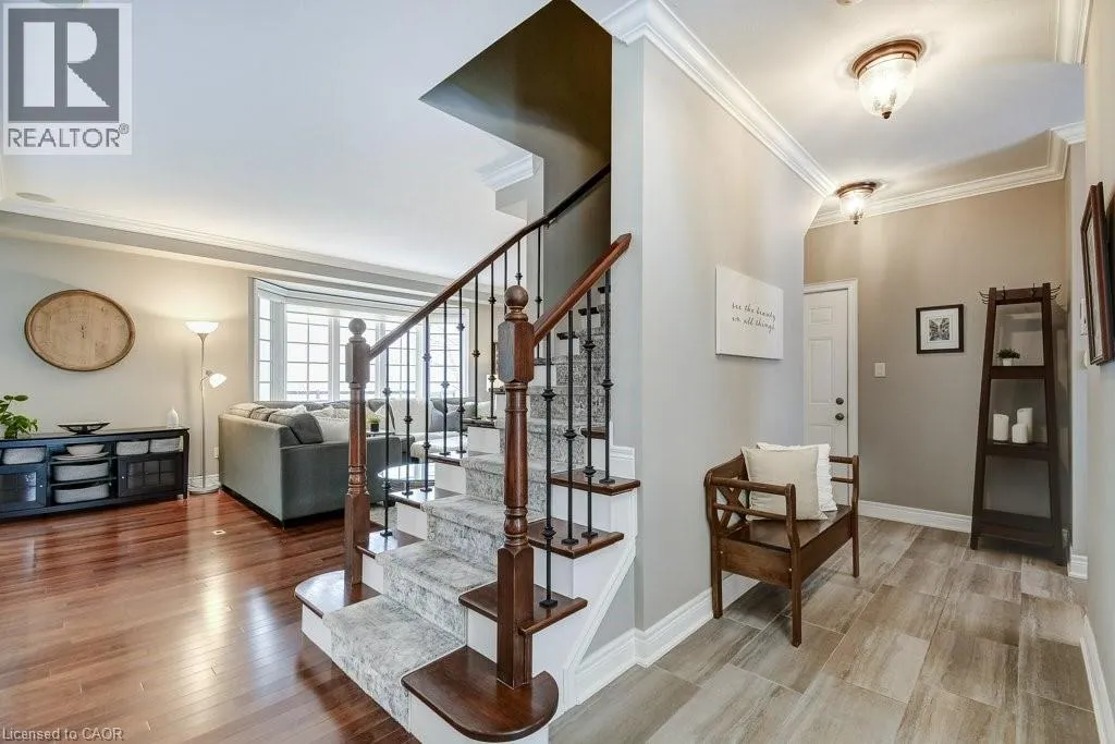 Executive living in prestigious Ancaster. Beautifully renovated 2-storey home on a quiet private road backing onto protected Conservation lands with no rear neighbours, offering exceptional privacy, tranquil treed views, and a true close-up-and-go lifestyle. Low monthly fees include snow removal (driveway & walkways), lawn cutting, fertilization, irrigation system open/close, and some seasonal garden planting. Designed with future living in mind