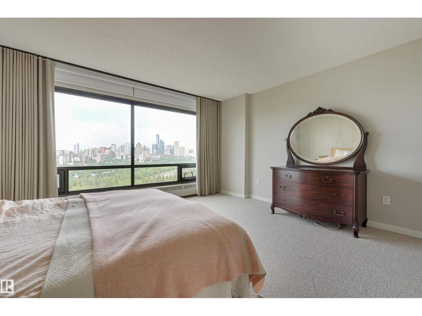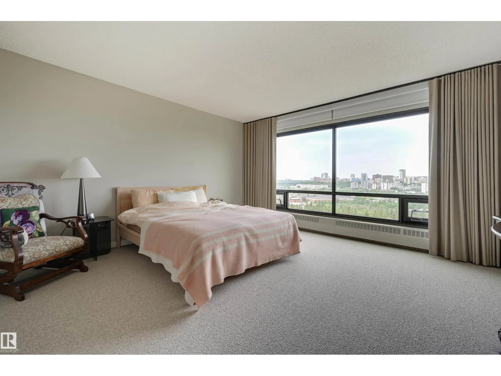 SPECTACULAR RIVER VALLEY & DOWNTOWN VIEWS from this 1512 sq.ft. condo in 9929 conveniently located on Sask. Dr. with the river valley trails at your doorstep, close to transportation, Whyte Ave., the U of A & Downtown. Beautifully RENOVATED with a modern open floor plan, new kitchen cabinets, quartz counters, island, stainless steel appliances with a Fisher & Paykel