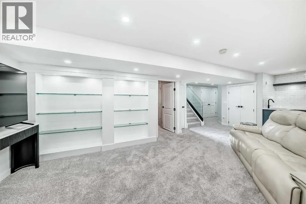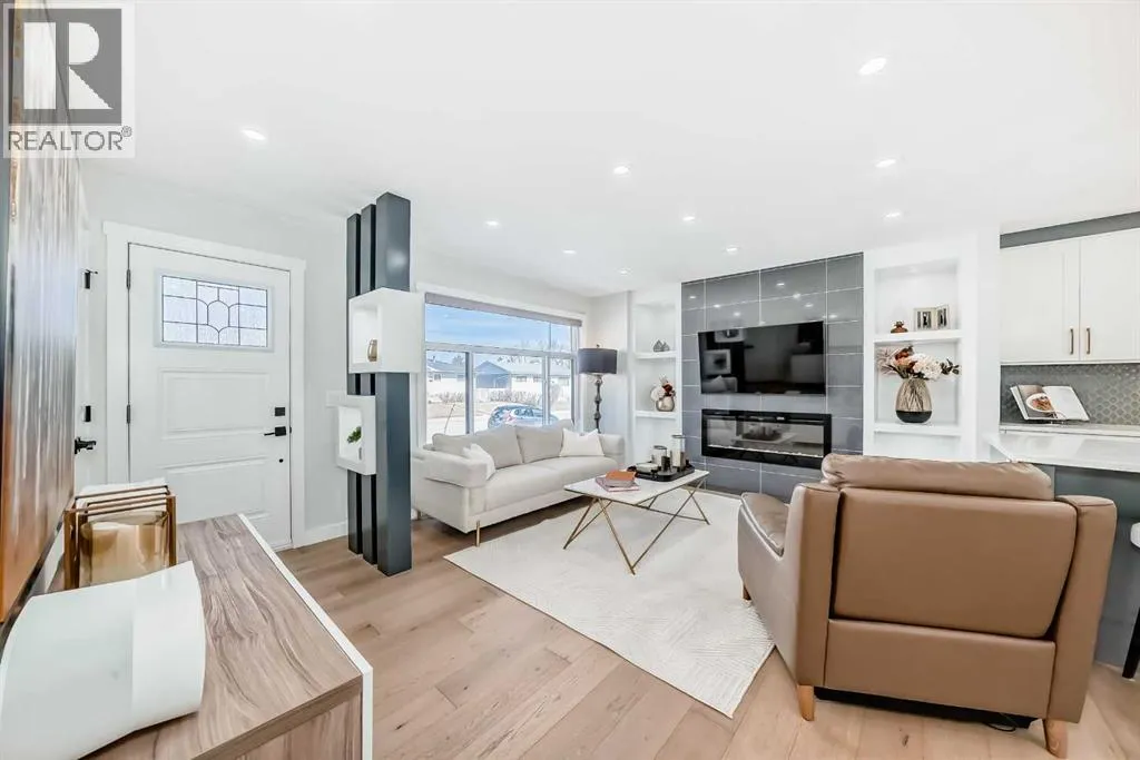 Experience refined living in this elegantly Acadia bungalow, where thoughtful design and elevated details come together in perfect harmony. A sunny south-facing yard, heated double garage, RV parking, and Gemstone lighting create an impressive first impression before you even step inside. The main floor welcomes you with an airy, light-filled layout and a beautifully appointed kitchen featuring quartz counters, a