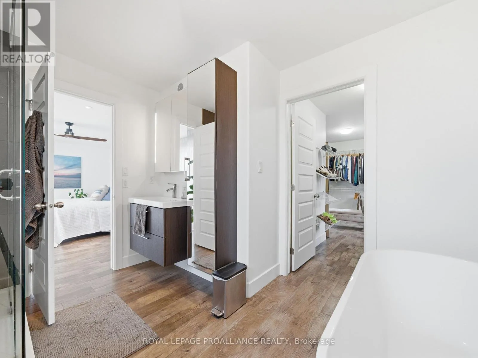 Beautifully updated and thoughtfully designed, 22 Kempton offers a stylish and versatile layout perfect for today’s modern lifestyle. The upper level features two bedrooms and two bathrooms, including a spacious primary suite with a luxurious ensuite complete with a large glass shower and relaxing soaker tub. The primary bedroom also enjoys access to an incredible walk-in closet created from the