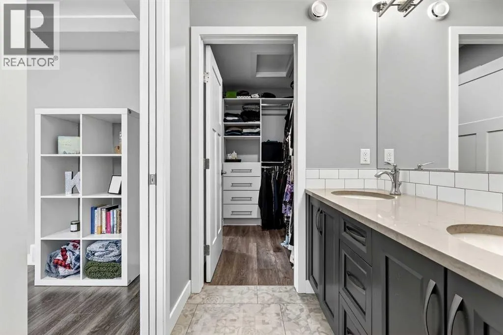 place to live. An excellent URBAN-STYLE air-conditioned Jayman BUILT “SONATA” home on a south-facing front-yard homesite with many custom Jayman Design centre-upgraded features. Meticulously maintained & crafted by the original owners – Truly a custom-built DREAM home. Over 1688 SF of luxury living space offering 3 bedrooms, 3.5 baths & an oversized long detached 2-car garage … Check out the floor plan and pictures! This OPEN design features 8′ & 12′ main floor ceilings – Spectacular CHEF’s kitchen overlooking the dining area and the lower great room. The living room features high 12′ ceilings, a stone-faced electric fireplace with a mantel and sunny south views. Upgraded features include a metal post railing, triple-pane windows, quartz countertops, a tankless water heater, an active heat recovery system, luxury wide-plank vinyl flooring throughout, plush carpeted staircase, light & plumbing fixtures, baseboard, doors and casings… and so much more! The kitchen is masterfully designed for efficiency and entertaining: Sleek modern ceiling height, classic white wood upper cabinet doors, rich blue lower cabinets, soft close drawers and doors, quartz countertops, upgraded Kitchen Aid stainless steel appliances with a gas cooktop & hood cover, full white subway tiled backsplash, recessed LED lighting, dramatic peninsula island with an eating bar for three & undermount black granite sink with extended bench/window above, and pantry. Upstairs includes an oversized primary bedroom with tray ceilings, a full spa-like ensuite featuring dual vanities, a walk-in glass-door shower, and a supers ized walk-in closet. Plus, 2 good-sized spare bedrooms, an upper laundry room with ensuite access, and a central walkway for excellent traffic flow. Other impressive features include a side door entrance, 6 solar panels, tankless water heater, high efficiency 2 stage furnace, high 10′-11′ basement ceilings, a big back yard with an upper BBQ wood deck, a lower 16′ x 15′ patio with a detached insulated 20′ x 24′ – 2 car garage, rich front curb appeal with stone details and a covered entry. June possession date available! Call your friendly REALTOR(R) to book a viewing! A lake lifestyle amenity beyond compare – Mahogany’s Central Beach site is the home of the community’s grand Beach Club, where residents have exclusive access to sandy beaches, a splash park, tennis courts, play equipment, a fishing pier and a non-motorized marina, and more! Don’t miss this opportunity. Call your friendly REALTOR(R) to book your viewing right away! (id:64429)