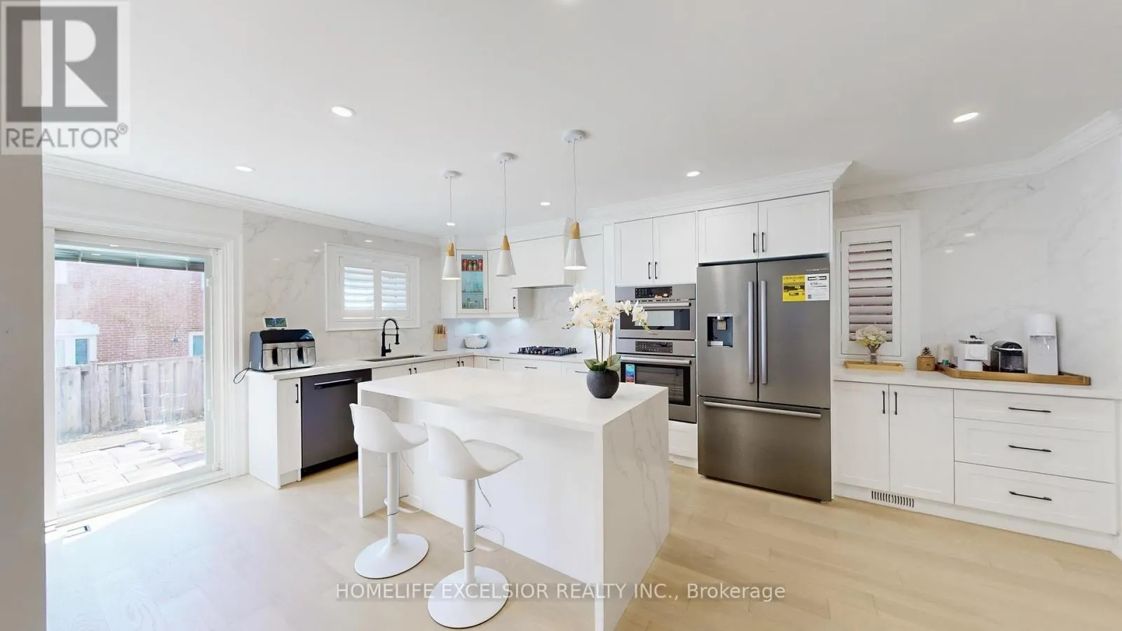 **YOUR DREAM HOME IS HERE** Fully renovated top to bottom in 2023. Chef’s Kitchen with gas stove. Undermount sink with white quartz countertop & eat-in Island with storage. Bosch appliances. Open Concept Main Floor with light Engineer Hardwood flooring throughout. Smooth Ceiling w Pot lights throughout ALL floors. High-end Grohe fixtures throughout. 4 Bedrooms with custom built-in closet. California shutter