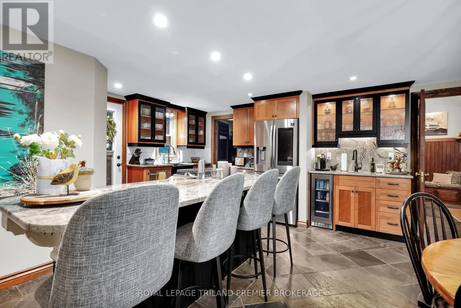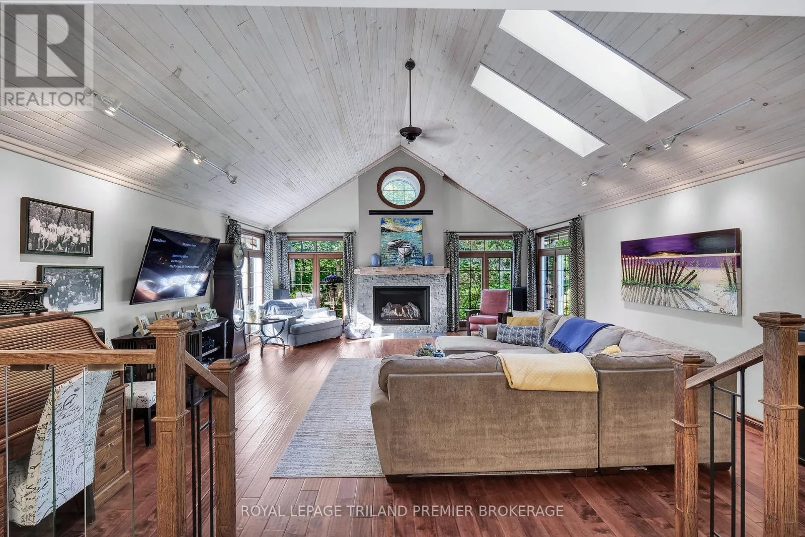 Relax and unwind at your private oasis nestled in the woods! This stunning home is situated on over 3 acres of lush green forestry in desirable Port Franks. Drive up one of the two private winding paths to this updated 1.5 storey home boasting all the amenities for everyday life and play! Enter through the front door into the grand