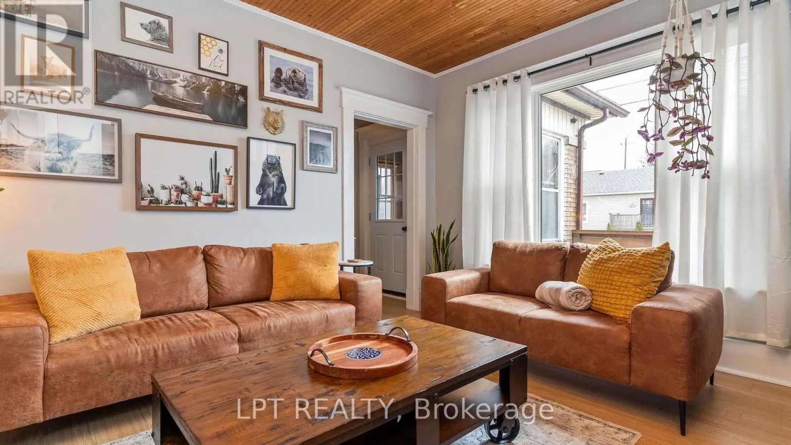 Welcome to 1084 Trafalgar Street – a charming brick bungalow with a sunny front porch that opens to a bright sunroom, perfect for morning coffee or relaxing with a book. The main floor features a functional layout with an entry foyer leading to a cozy living room with a fireplace, flowing effortlessly into the dining area and kitchen area. Two