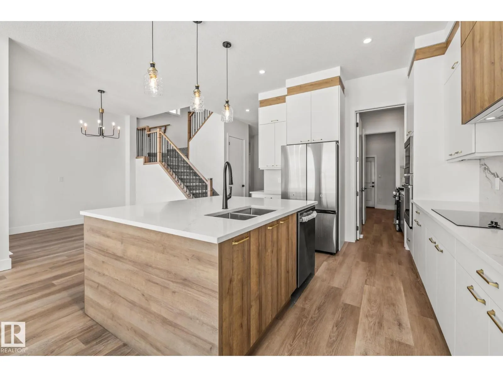 Welcome to this beautifully designed 4 bedroom, 3 bathroom home featuring a walkout basement and a layout that perfectly balances style and functionality. As you step inside, you’re greeted by a spacious front bedroom, ideal for a home office or flex space, alongside a convenient 3-piece bathroom, while the mudroom offers direct access to the double attached garage for added