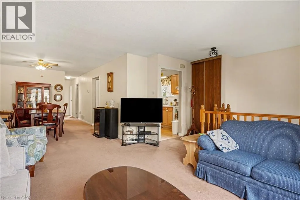 area flows seamlessly into the dining space, ideal for everyday living and entertaining. The eat-in kitchen is equipped with modern quartz countertops, an undermount sink (2024), and includes appliances. This level is complete with three comfortable bedrooms and a 4-piece bathroom. The spacious, partially finished basement (2020) provides additional living space and includes a walkout to the backyard and a dining-sized deck, perfect for hosting or enjoying quiet outdoor meals. You’ll also find a dedicated laundry area and ample storage. Outside, the private backyard is framed by mature surroundings, creating a peaceful retreat for relaxing or spending time with family. The home also offers two driveway parking spaces for added convenience. Ideally located in a family-friendly community, you’re just minutes from parks, schools, scenic walking trails, shopping, dining, and community centres, with quick access to major highways for easy commuting. (id:62650)