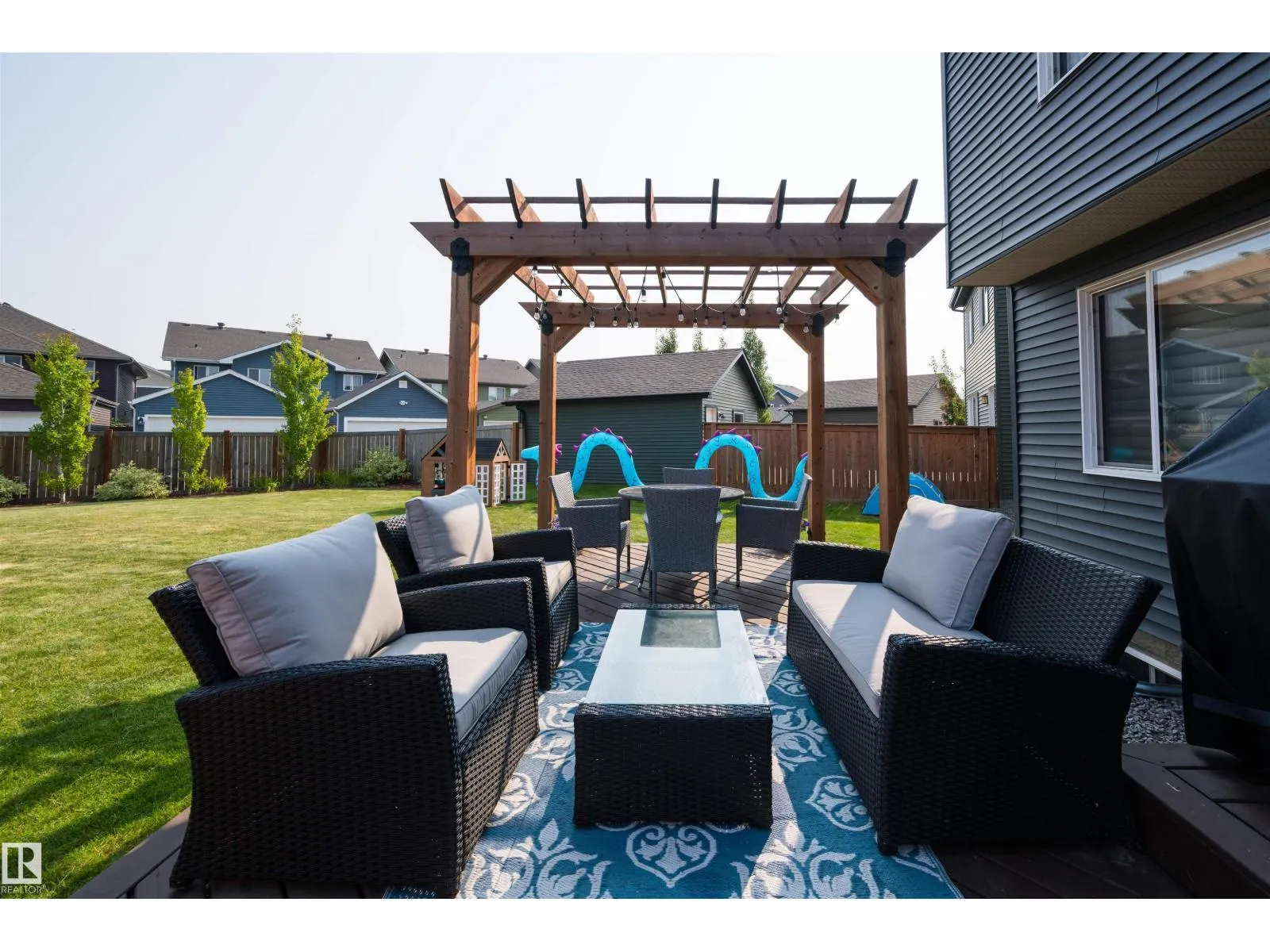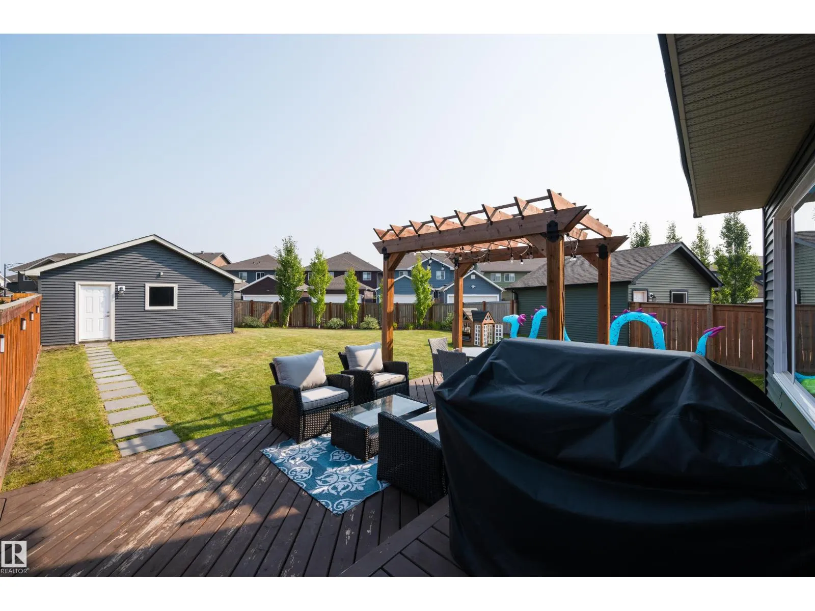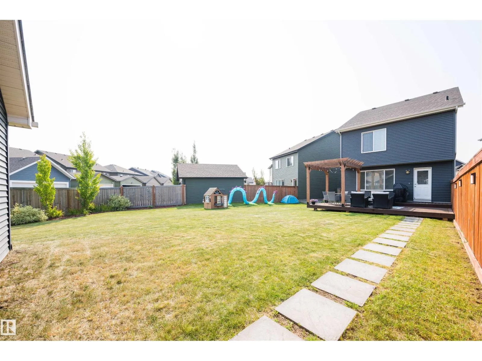 Welcome to your dream home in The Orchards! This stunning property boasts 3 spacious bedrooms and 3 bathrooms, including a luxurious 5-piece primary ensuite. Nestled on a pie lot, the fully landscaped backyard features a charming pergola, perfect for outdoor entertaining, along with a detached double car garage. The unfinished basement offers endless possibilities for customization, allowing you to create