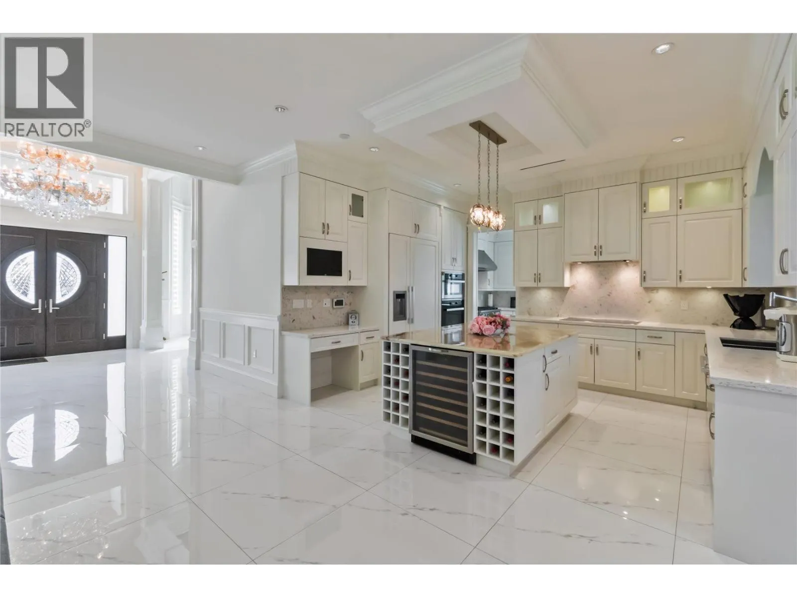 Stunning designer home boasts over 3,766 square ft of luxurious living space on a large 8,400 SF lot in a desirable neighbourhood in Richmond. The grand entrance welcomes you into a formal living room with south-facing exposure, soaring 20-foot ceilings and elegant crystal light fixtures; the gourmet chef´s kitchen, complemented by a separate work kitchen, features high-end cabinetry, granite countertops,