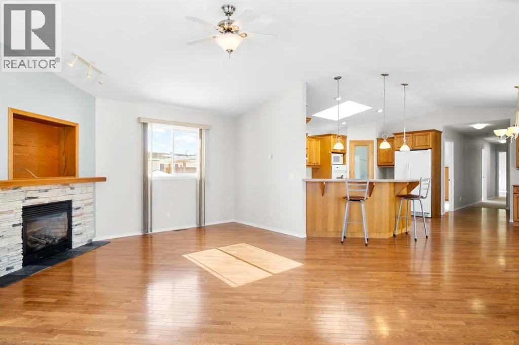Welcome to effortless living in the highly sought-after 55+ community of Silverlynx Park in the heart of Olds. This beautifully maintained home offers 1,537 sq ft of thoughtfully designed space, combining comfort, functionality, and timeless finishes throughout. Step inside to an inviting open-concept layout highlighted by vaulted ceilings, a skylight, and large windows that flood the home with natural light.