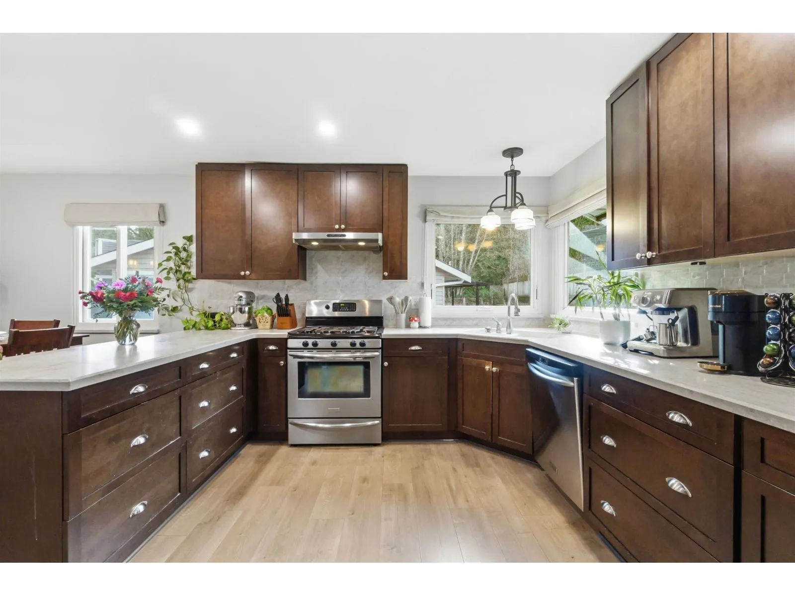 Tucked away on a quiet cul-de-sac in sought-after Walnut Grove, this move-in ready home offers mountain views, a sunny south-facing yard, RV parking and excellent suite potential. Inside, enjoy wide plank flooring, custom built-ins and cozy stone fireplace. The beautifully updated kitchen features shaker cabinets, quartz counters, stainless steel appliances, gas range and massive counter perfect for gathering. Downstairs offers