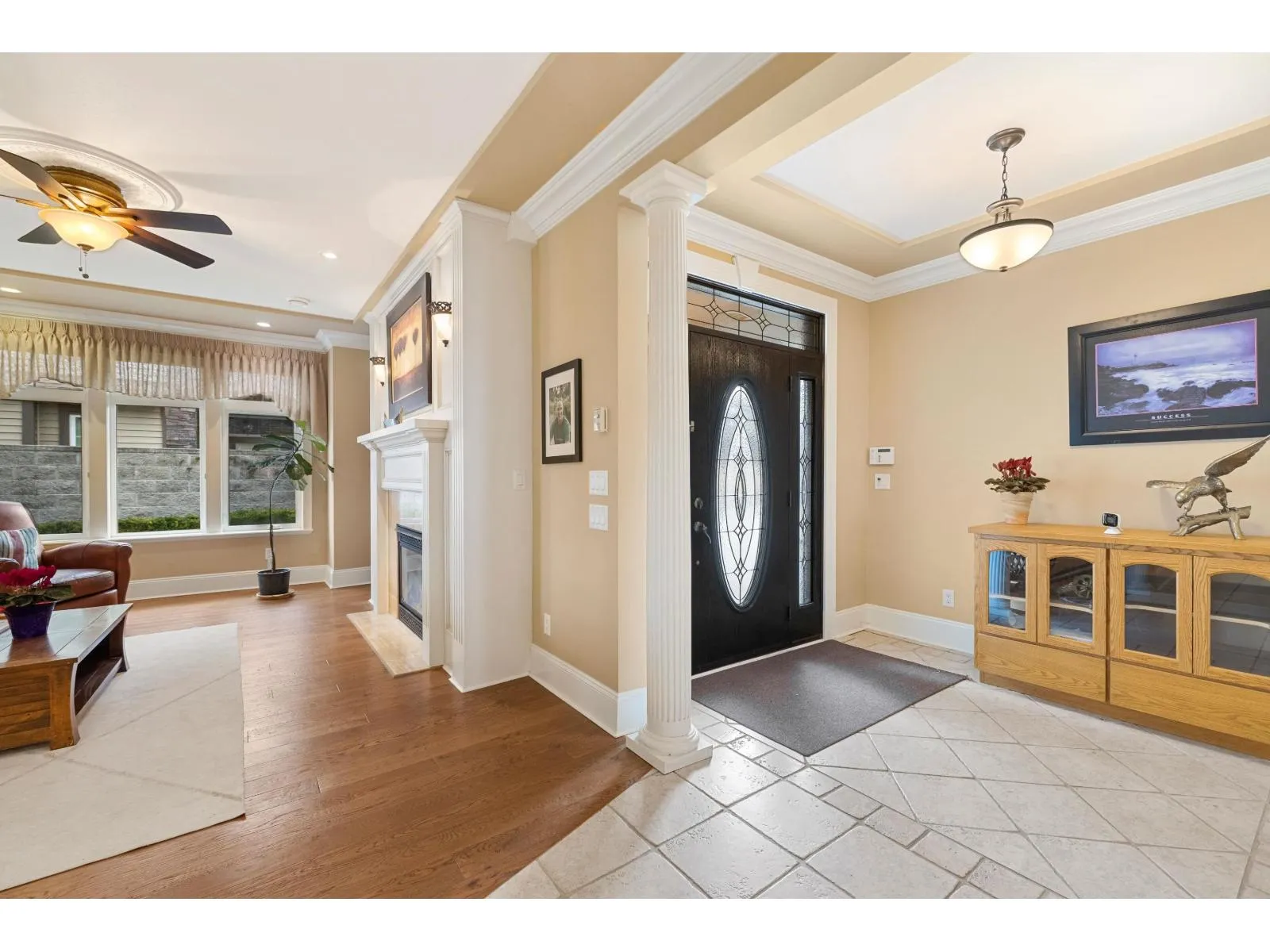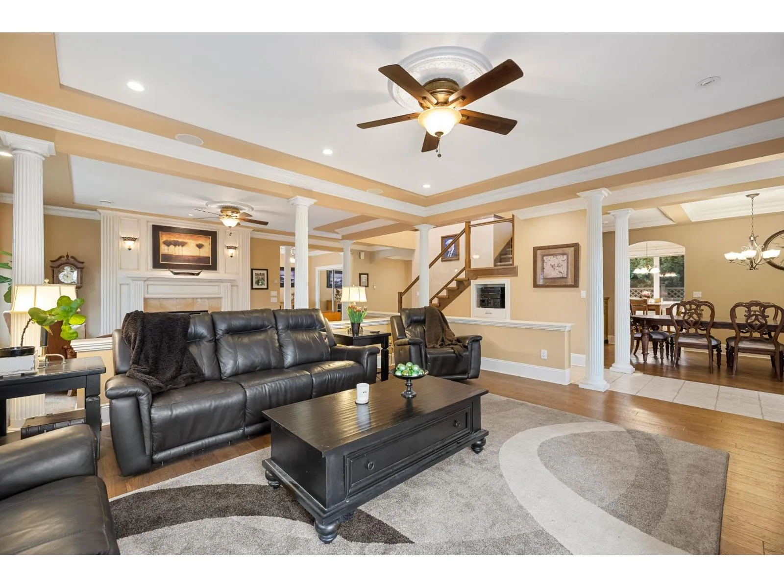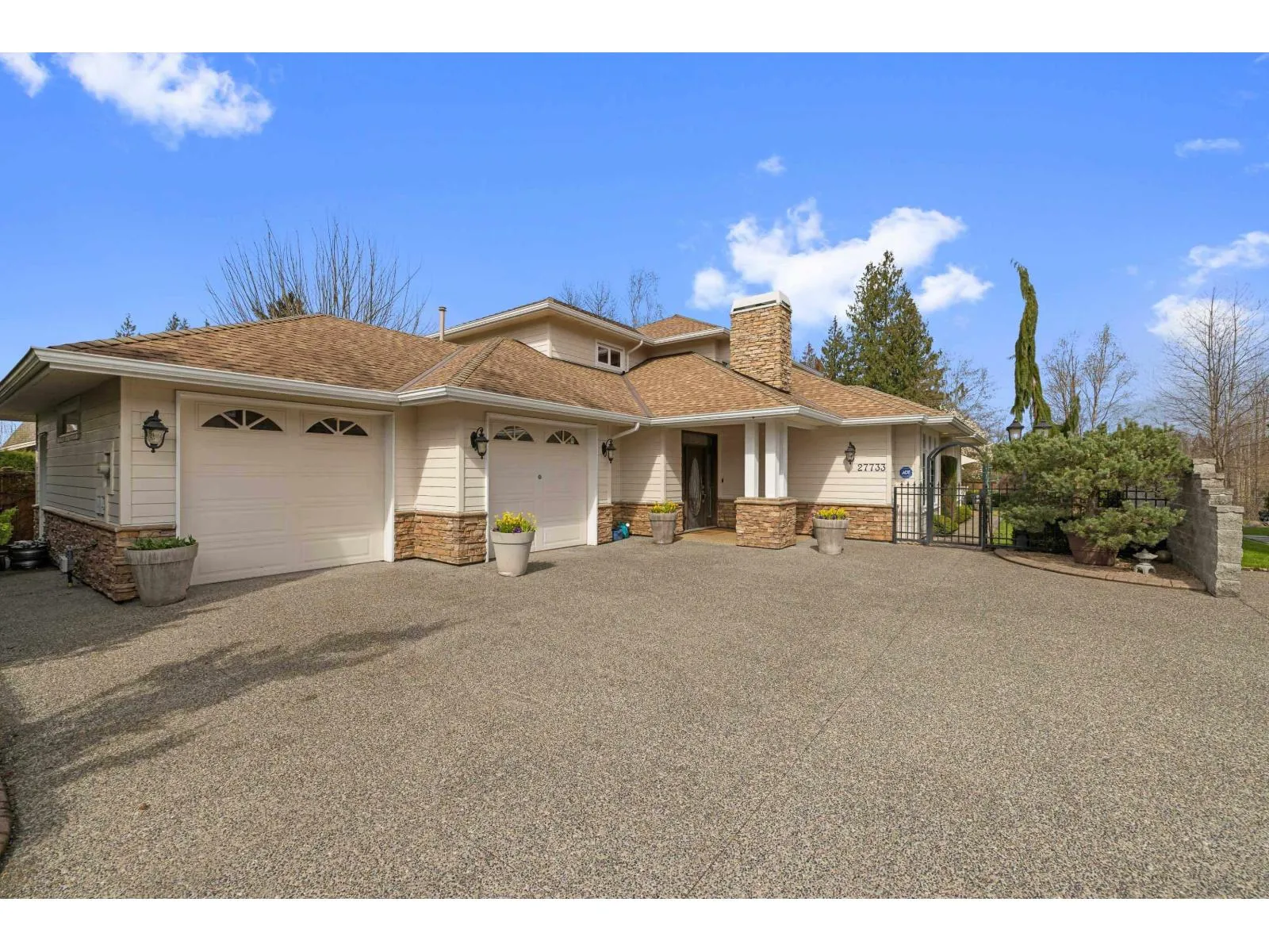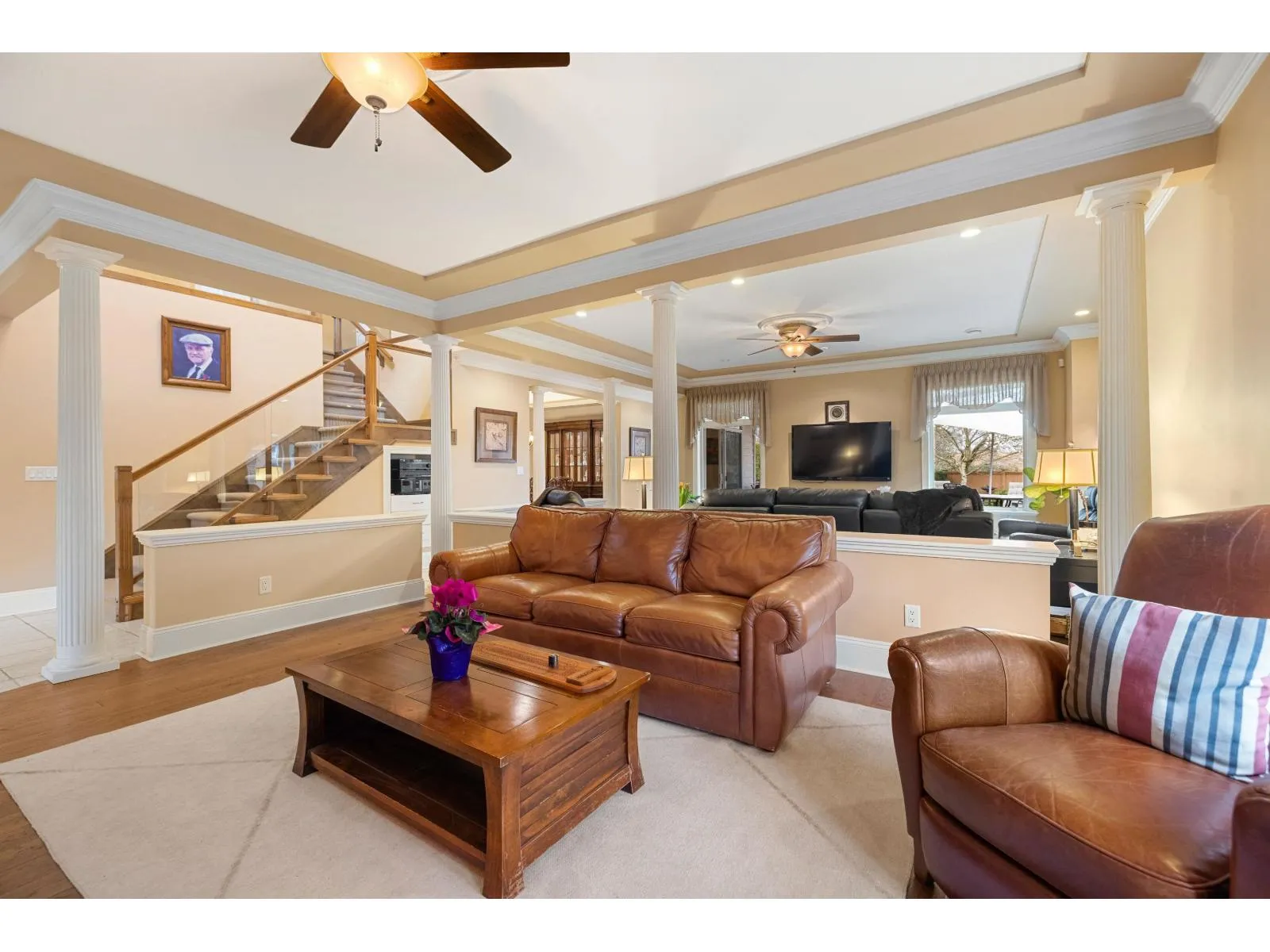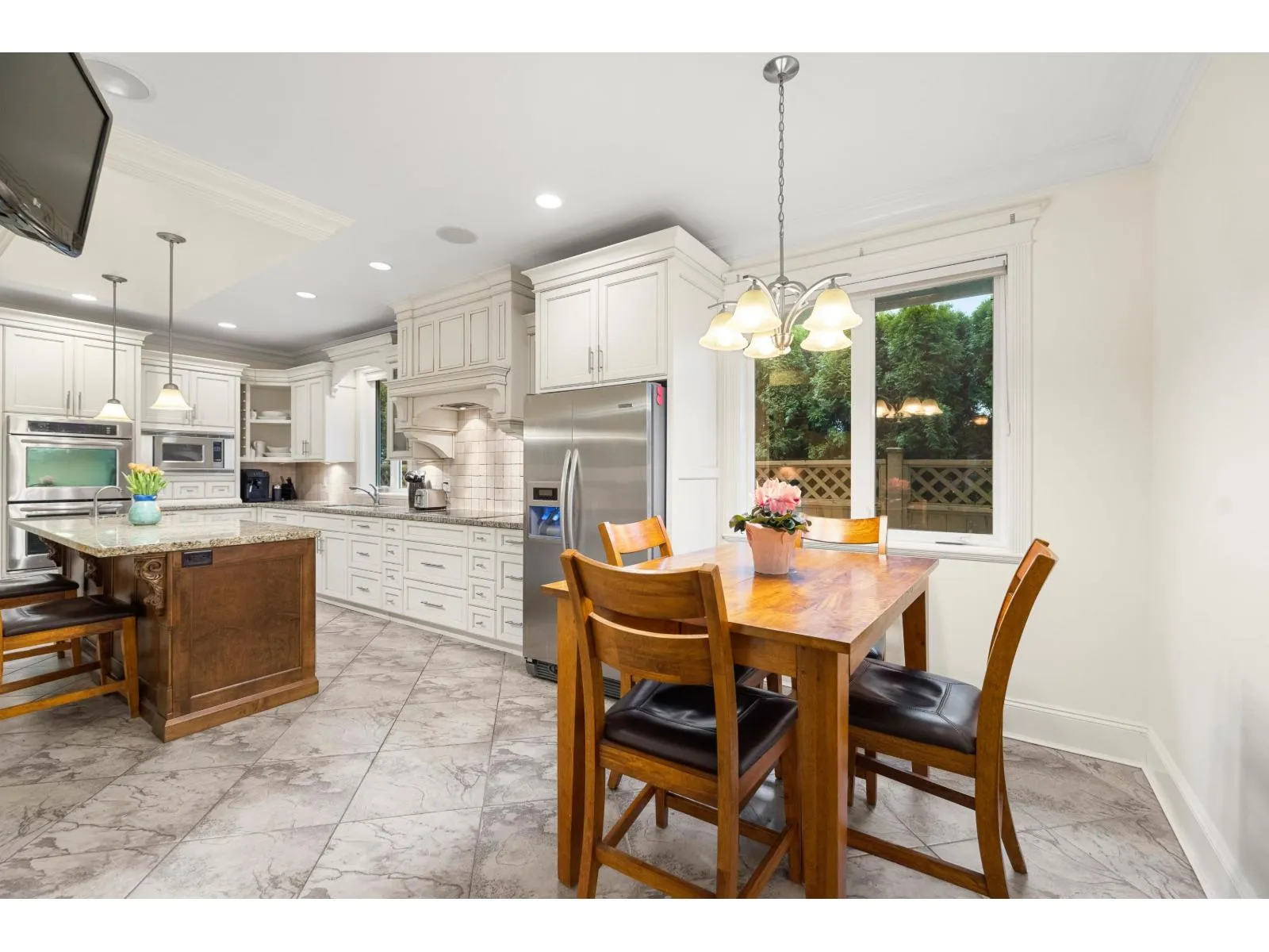 A RARE find! CUSTOM BUILT executive home w/ PRIMARY ON THE MAIN on 9,933 sq/ft lot, backing onto serene green space! Desirable floorplan features main floor living -with a grand living room, gas f/p & a family room flooded with natural light. Crown moldings, hardwood floors, in-ceiling speaker system throughout. Kitchen features elegant white cabinets, granite counters, island, double ovens,