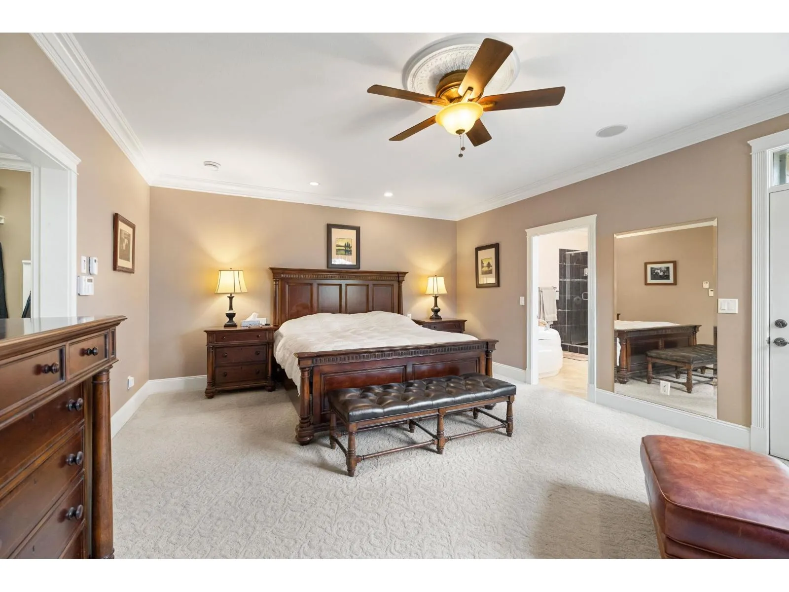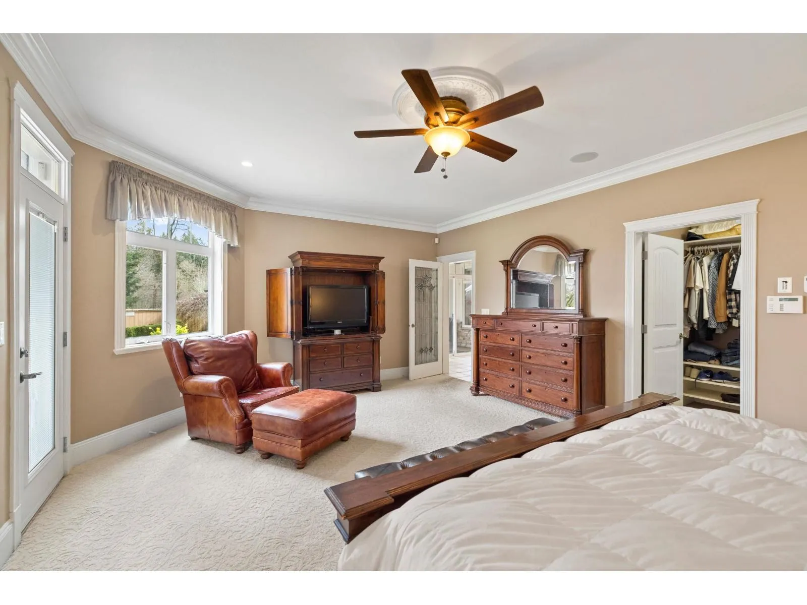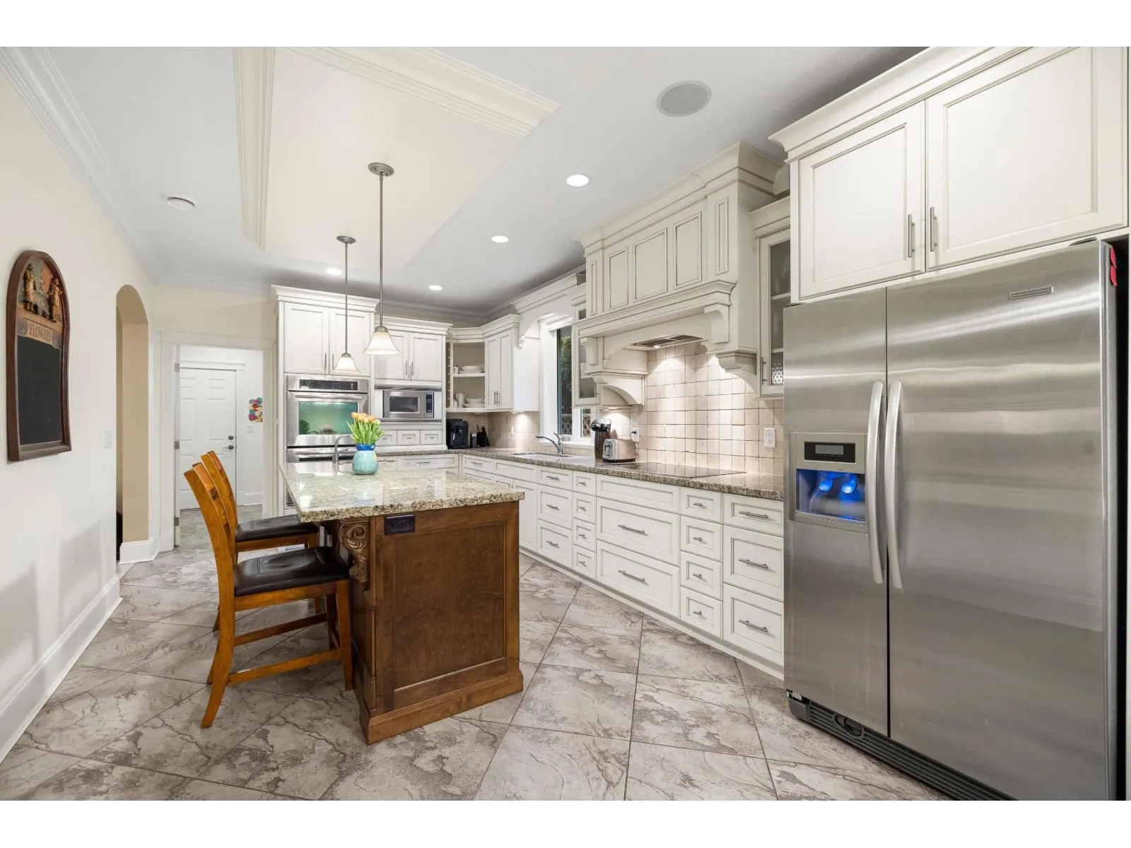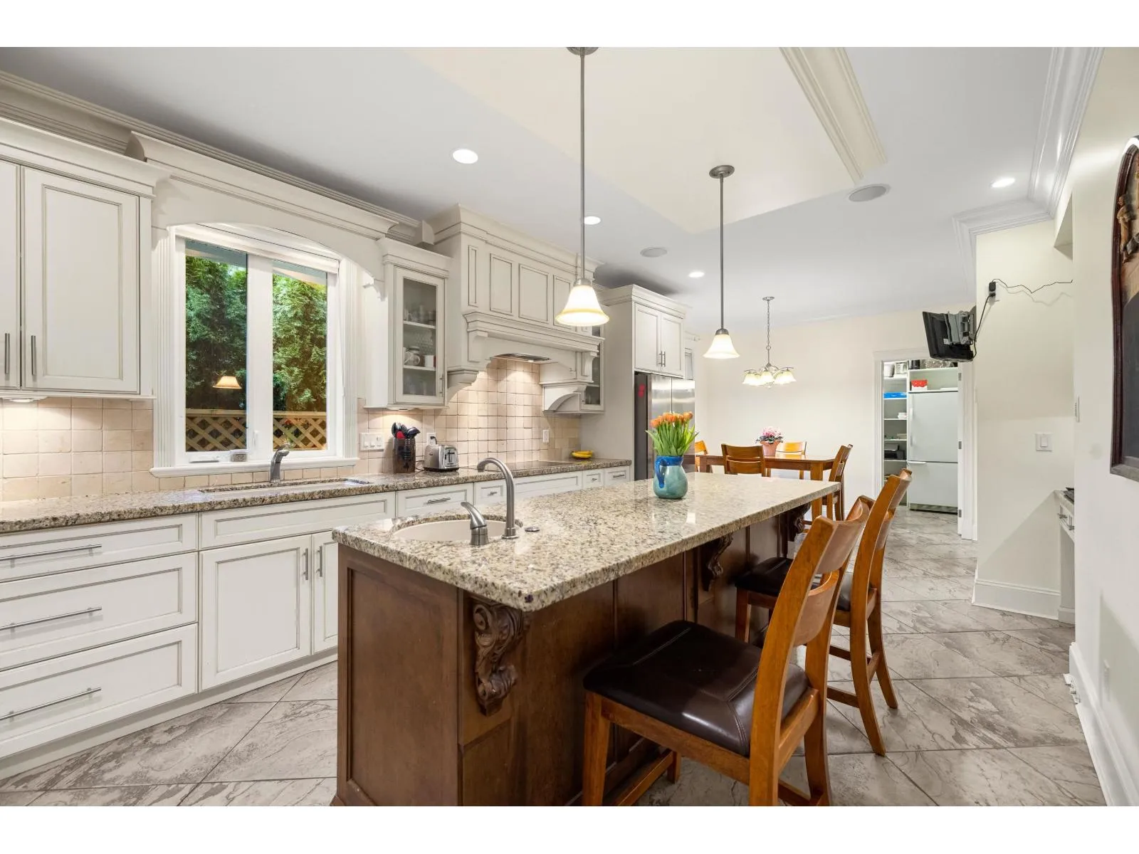 A RARE find! CUSTOM BUILT executive home w/ PRIMARY ON THE MAIN on 9,933 sq/ft lot, backing onto serene green space! Desirable floorplan features main floor living -with a grand living room, gas f/p & a family room flooded with natural light. Crown moldings, hardwood floors, in-ceiling speaker system throughout. Kitchen features elegant white cabinets, granite counters, island, double ovens,
