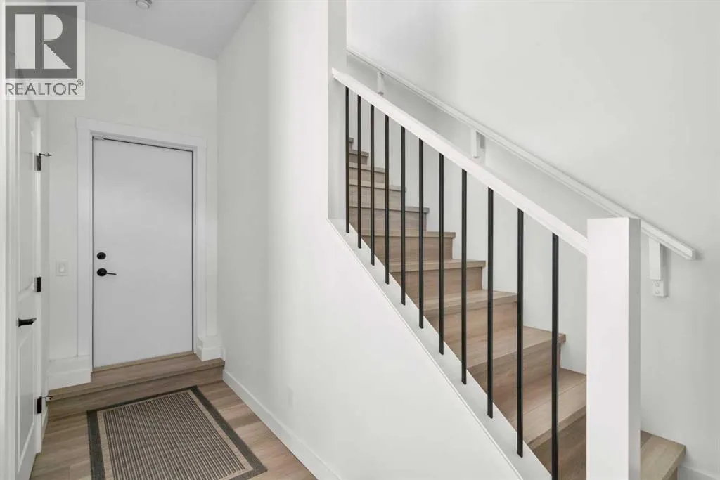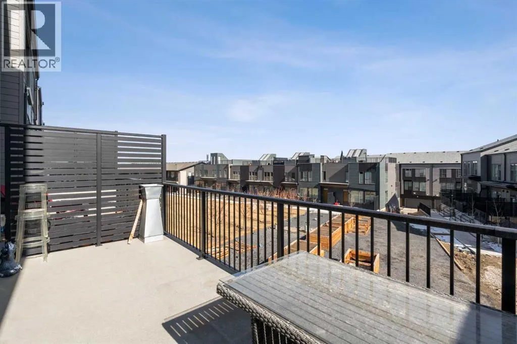 tailored for professionals, urban families & lifestyle driven buyers seeking a seamless blend of city convenience & serene natural surroundings. From the moment you arrive, a private east facing front patio greets you, overlooking a massive lush green space & beautifully maintained raised garden beds, instantly connecting you to the community’s outdoor lifestyle & sense of calm. Step inside to a versatile entry level flex space, perfect as a home office, gym, creative studio, or quiet retreat, with direct access to the double attached garage with a additional storage room. The main living level dazzles with soaring ceilings, oversized windows, an open concept layout drenched in natural light. At its heart, a chef inspired kitchen showcases a premium KitchenAid appliance package with gas cooktop, built-in oven, microwave & sleek range hood, complemented by dramatic quartz countertops with waterfall edges, a spacious island with seating & custom cabinetry complement these features, creating a stunning focal point for entertaining & everyday living. The dining area flows effortlessly into a generous living room anchored by a contemporary electric fireplace set against a full height artistic plaster feature wall, offering a perfect blend of warmth, style & sophistication. Step onto the full width east facing deck to enjoy serene green space & city skyline views, ideal for morning coffee, sunset cocktails, or quiet relaxation. Upstairs, the expansive primary suite features a walk-in closet, a luxurious private ensuite with upgraded tile surrounds & sh ower niches. two ample sized secondary bedrooms offer stunning downtown views, while a central bonus area provides flexible space for a reading nook, study, or children’s play area, complemented by convenient laundry. Every detail reflects thoughtful craftsmanship, from luxury vinyl plank flooring on the main level & tile in bathrooms, to custom blinds, additional pot lights, central air conditioning, sleek metal spindle railings, while EnerGuide certification ensures energy efficiency & lasting comfort. Situated in one of Calgary’s most vibrant & connected neighborhoods, residents enjoy immediate access to walking paths, parks, the Bow River, Douglas Fir & Quarry Trails, Shaganappi Golf Course, boutique fitness studios, dog friendly spaces plus some of the city’s finest dining & entertainment. With Bow Trail & the LRT nearby, commuting downtown or escaping to the mountains is effortless, blending urban excitement with outdoor adventure. This townhome is a statement of elevated modern living & design. (id:64429)