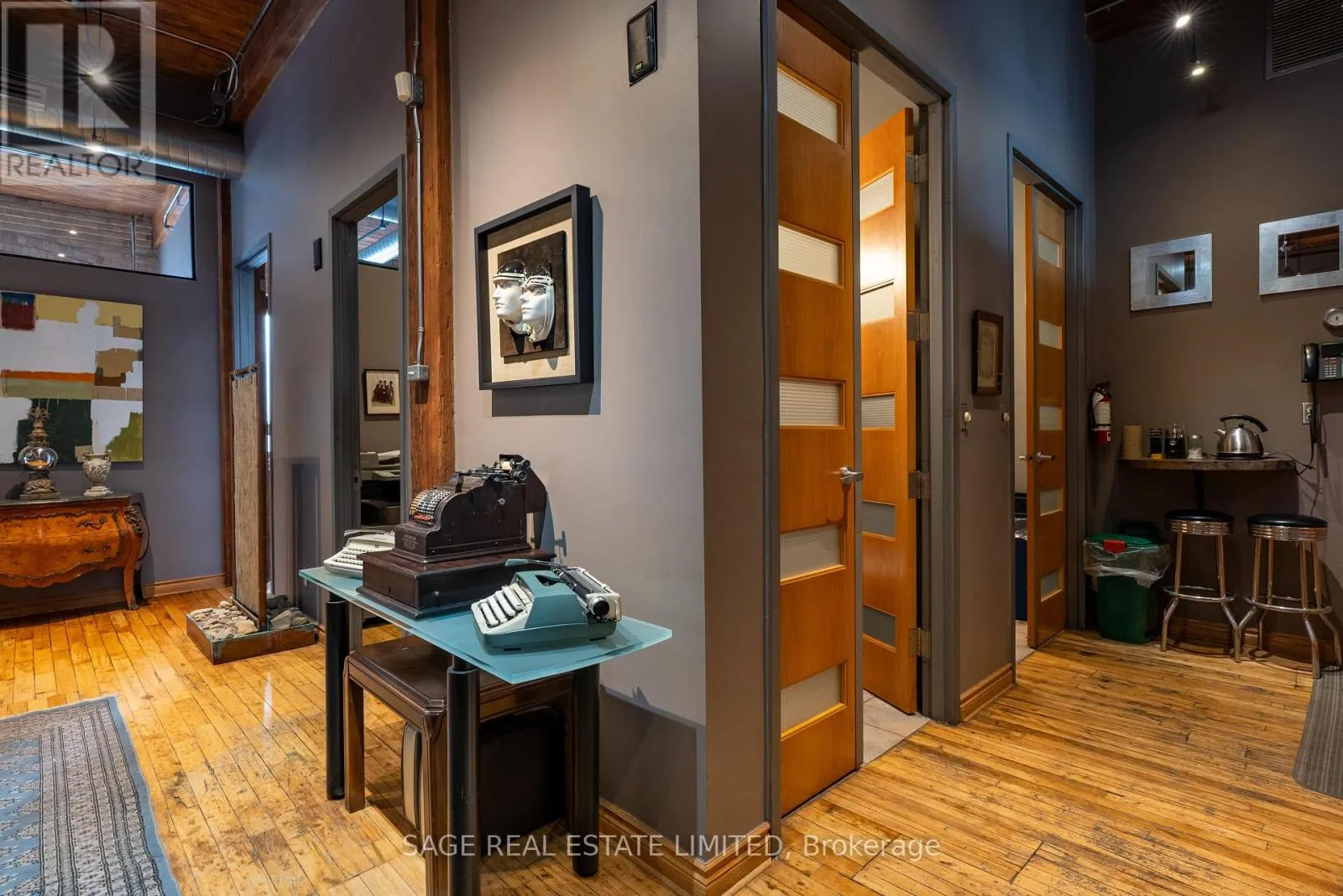 Rare opportunity to share stunning professional office space in fully restored grand century hard loft warehouse located at the Galleries on Morrow Avenue. Exposed post and beam construction and brick walls, hardwood floors, soaring wood ceilings with massive windows and abundant natural light. Direct grade access from courtyard to 3000 ft. space featuring beautiful reception area with fireplace, large boardroom,