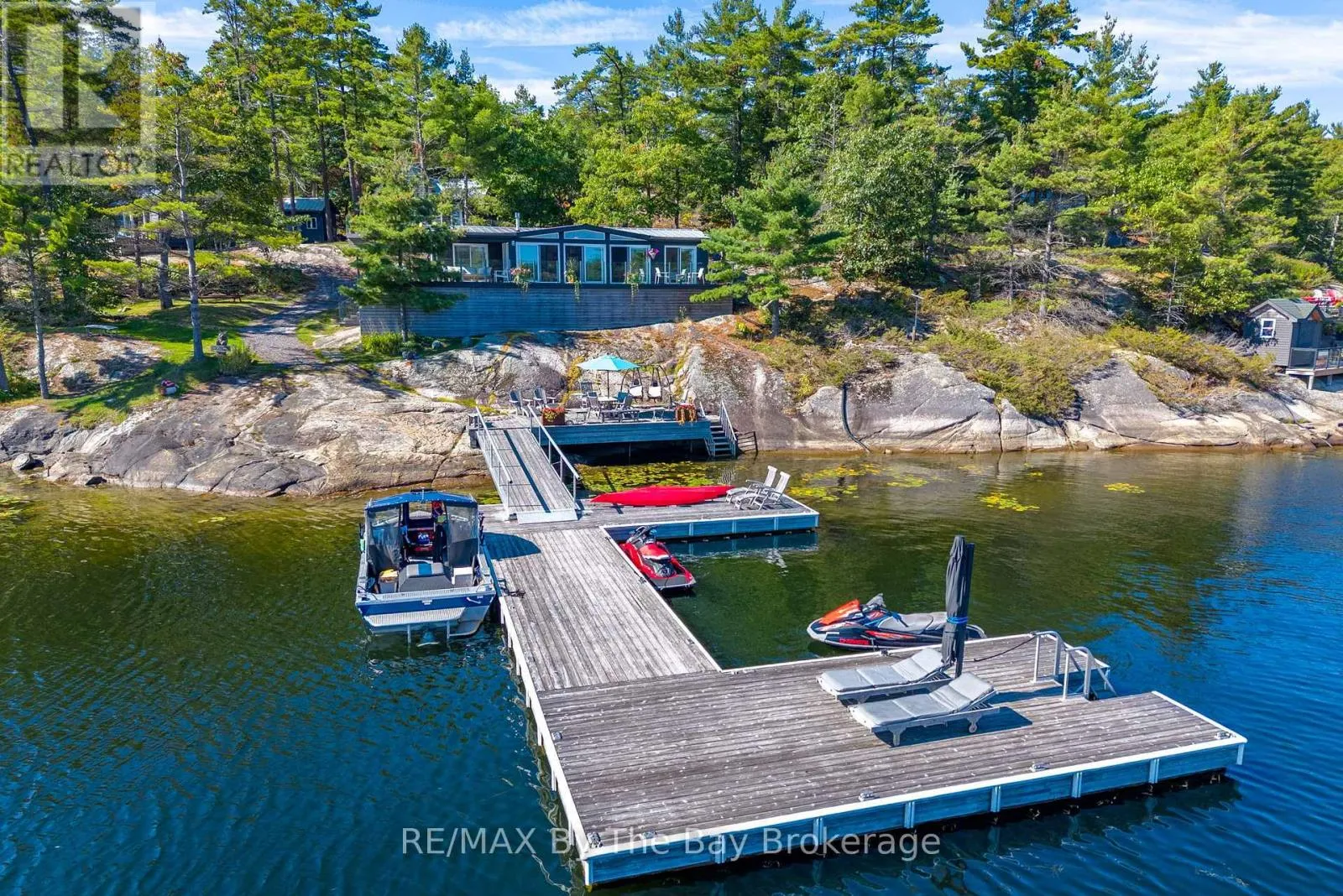 Set on 1.37 acres of magnificent Georgian Bay shoreline, this private waterfront estate is a rare expression of understated luxury, where exceptional design and natural beauty exist in perfect harmony. A stunning, 2-bedroom cottage rests on granite shore just steps from the water, accompanied by a separate 2-bedroom executive bunkie, each with its own laundry for effortless comfort and convenience.
