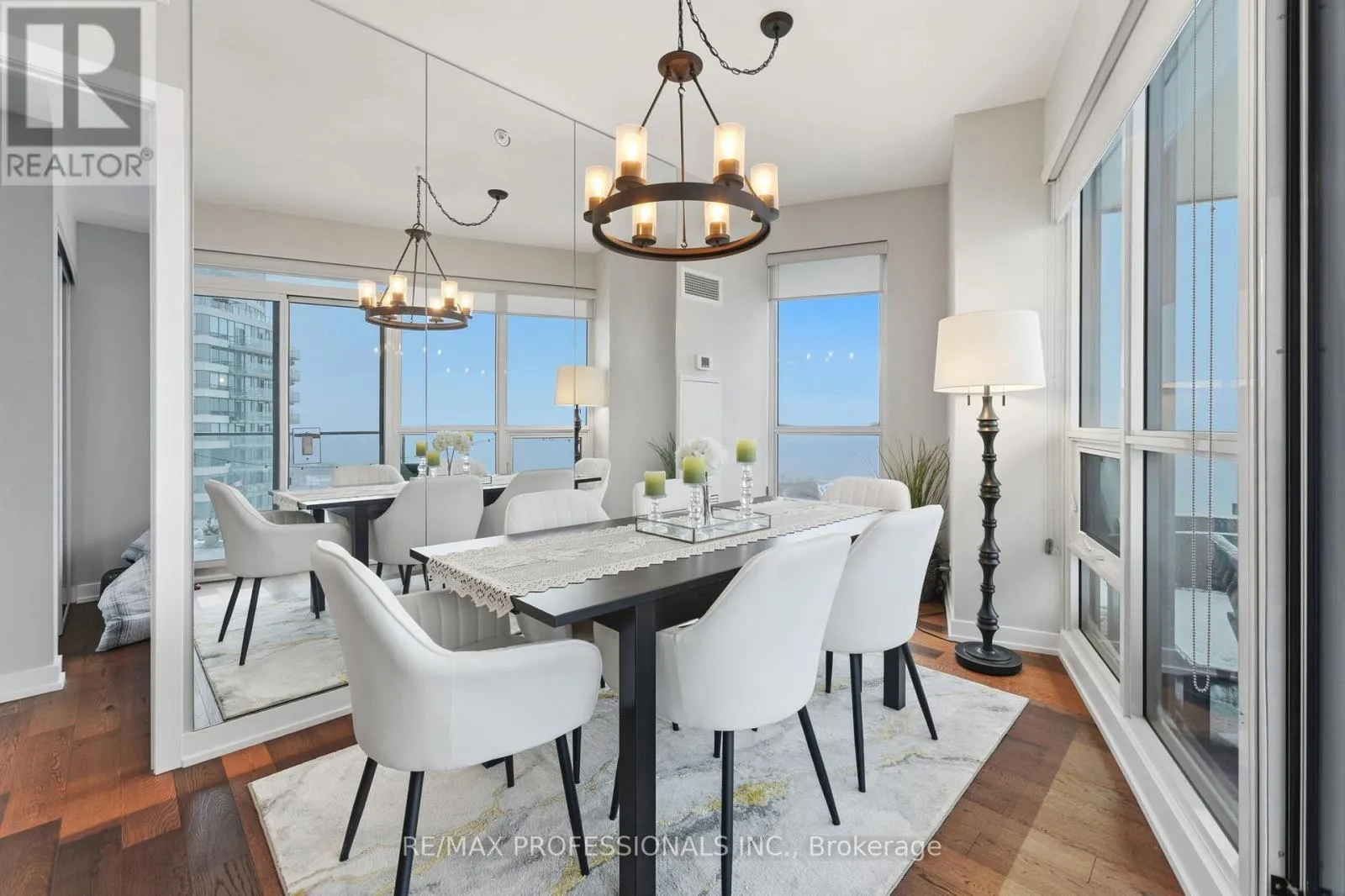 Welcome to Westlake Village and this stunning 904 sq ft corner suite, soaring high above the lake with forever southwest views of Lake Ontario, Humber Bay Park West, the Etobicoke Yacht Club, Mimico Creek, and the CN Tower. Flooded with natural light and framed by 9 ft ceilings, every room offers a breathtaking panorama. The open-concept layout features engineered hardwood