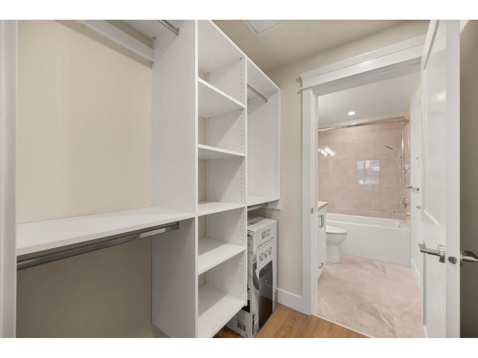 Welcome to Walnut Park by Quadra Homes!!! This 1 Bed, 1 Bath unit has 9 foot ceilings, A/C, Stainless Steel appliance package, white quartz countertops, white shaker cabinets, vinyl-plank floors throughout (heated tile floors in the bathroom), built in closet organizers, built in safe, HUGE storage locker and 1 parking stall! Strata fees include access to the complex