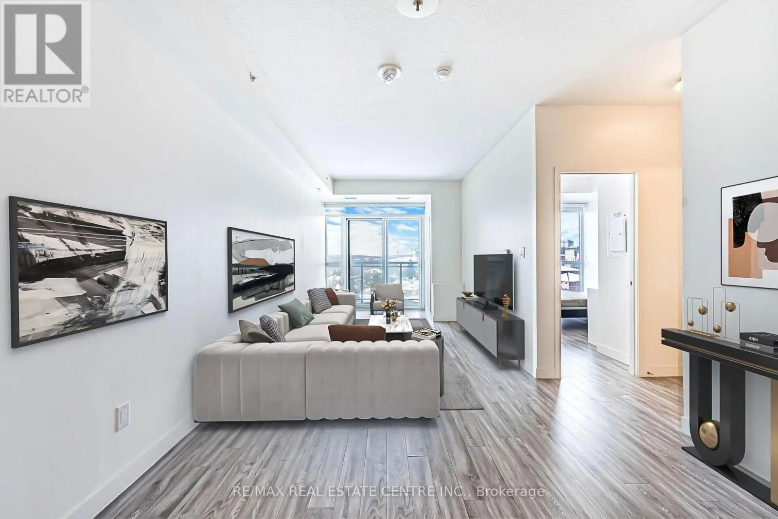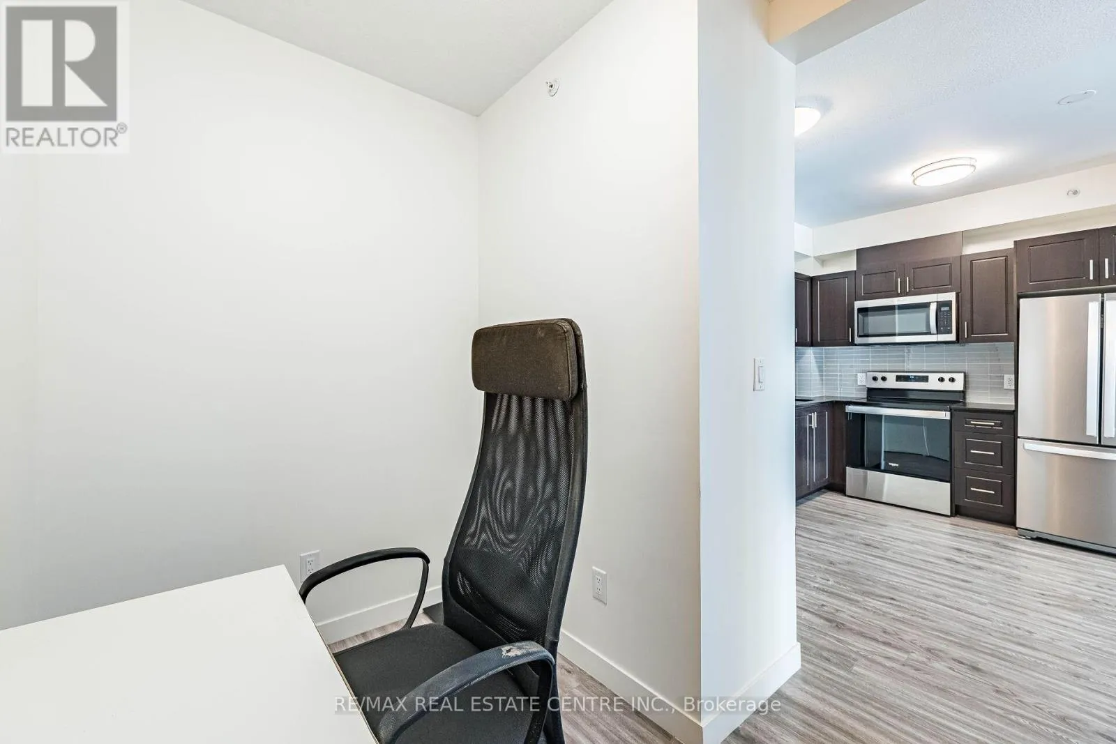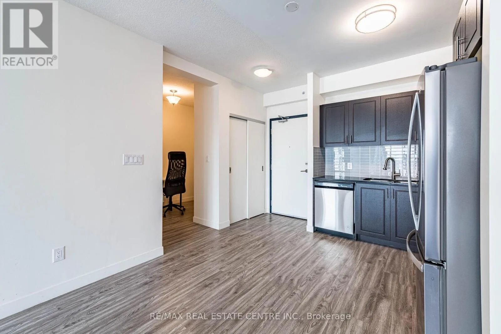 Bright and well laid out 1 Bedroom + Den suite at 128 King St N with desirable south-facing exposure and open views. The unit features a practical floor plan with a modern kitchen offering full-height cabinetry, quartz countertops, stainless steel appliances, and plenty of storage. The kitchen opens into a comfortable living and dining area with access to a private