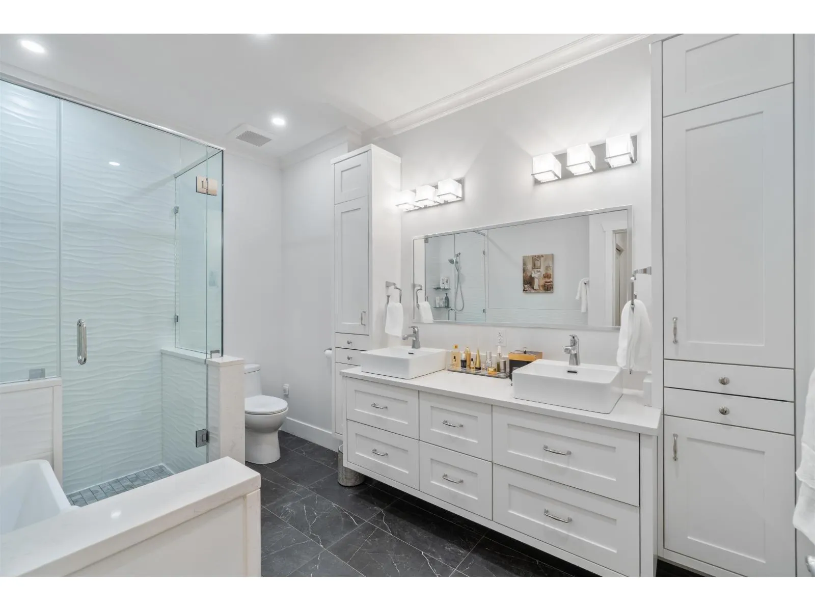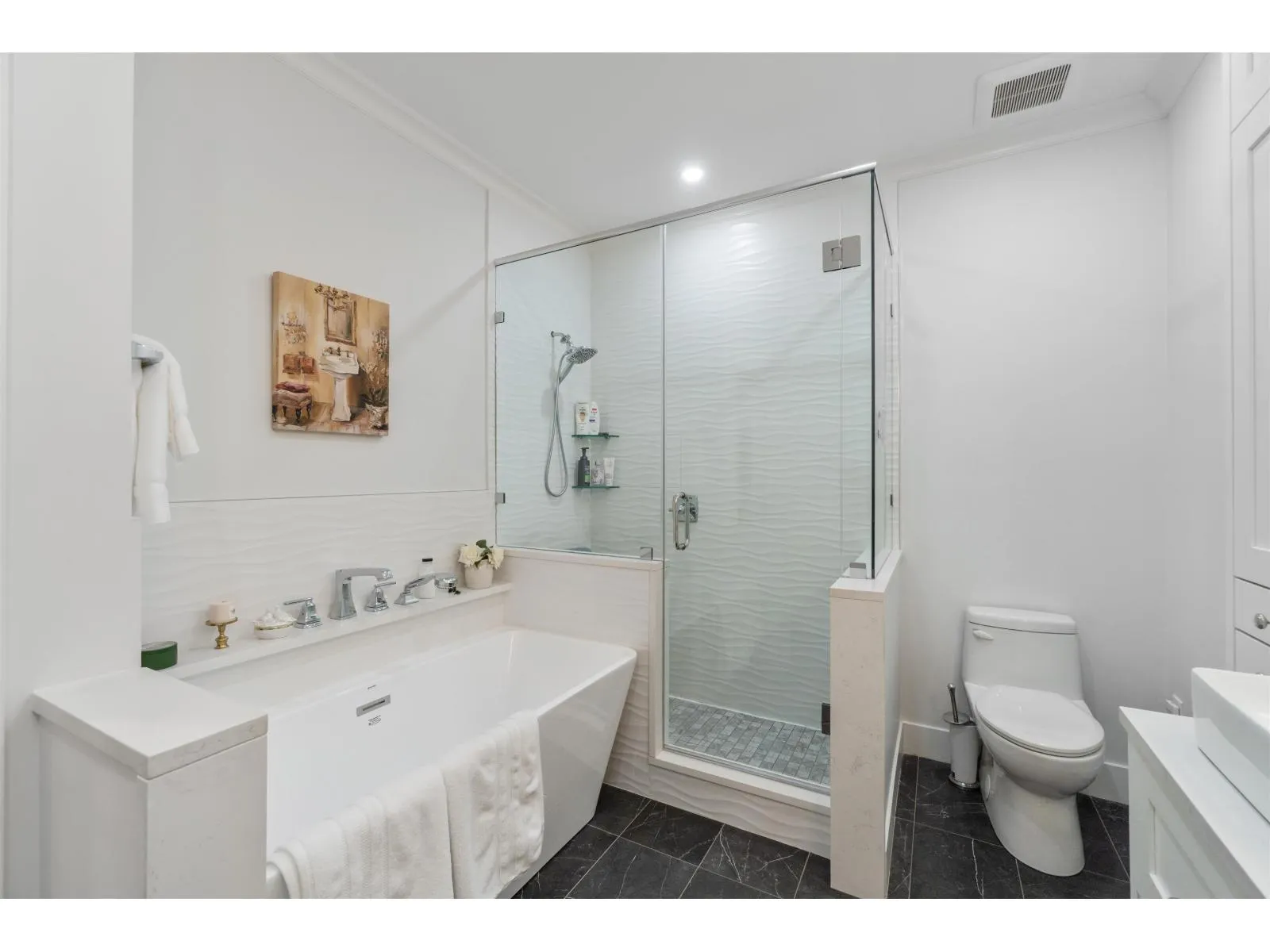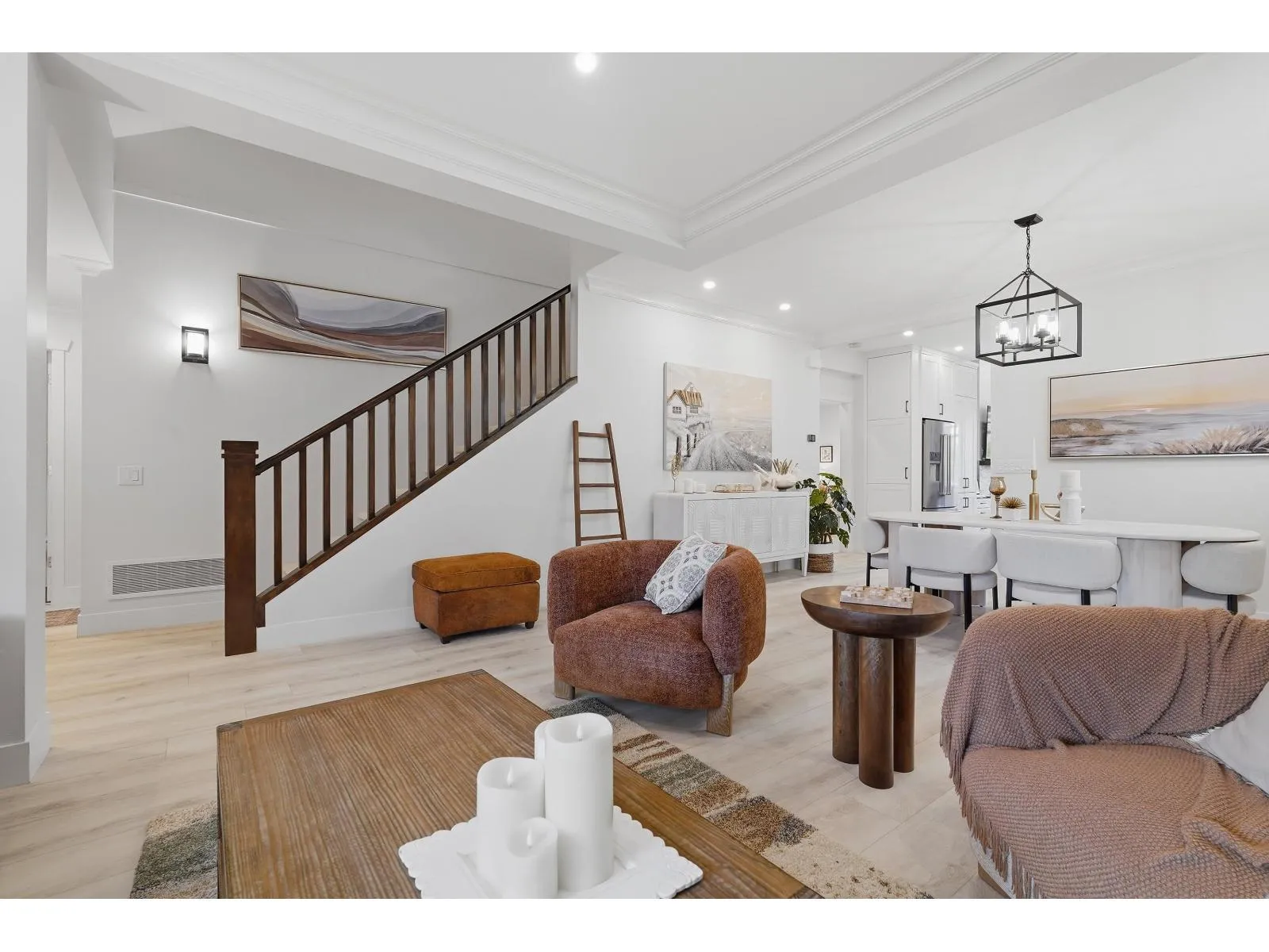 Impeccably renovated Hazelmere Village townhome in 10/10, turn key condition. Primary bedroom on the main! Thoughtfully designed with quality finishes, a functional layout for everyday living and entertaining, and excellent storage throughout. Features include forced air heating, air conditioning, and two gas fireplaces for year round comfort. Custom dining built-ins offer a beverage cooler and illuminated cabinetry. Custom desk built-in