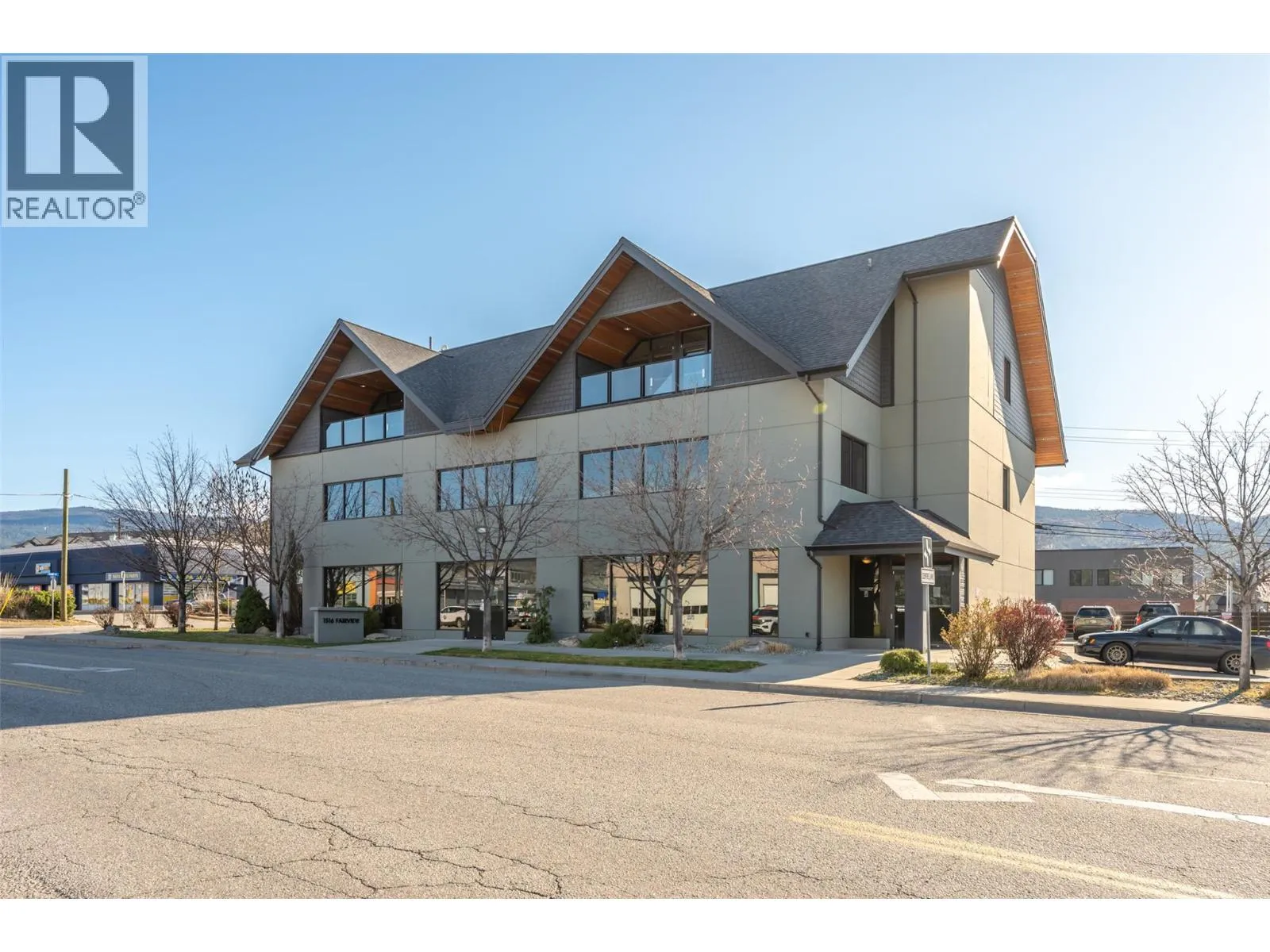 Well-appointed lease space on Fairview Rd, Penticton. 2,488 square ft in a modern building. The premises are set up as office space. The main space has an ergonomic design and layout with a kitchen plus several generously sized offices with a large meeting or work area. Large windows provide plenty of natural light. The building boasts an attractive exterior with