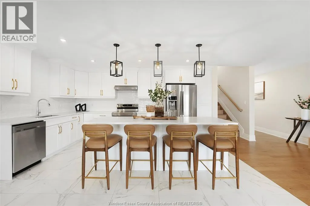 This stunning 3-bedroom, 2-full washroom end-unit townhome at 113 Reed Street in Essex is a true showstopper, priced at $659,900. The home is defined by high-end modern upgrades, most notably the custom designer feature walls in both the living room and the primary bedroom, adding an immediate sense of luxury and character to the space. Featuring a bright, open-concept layout